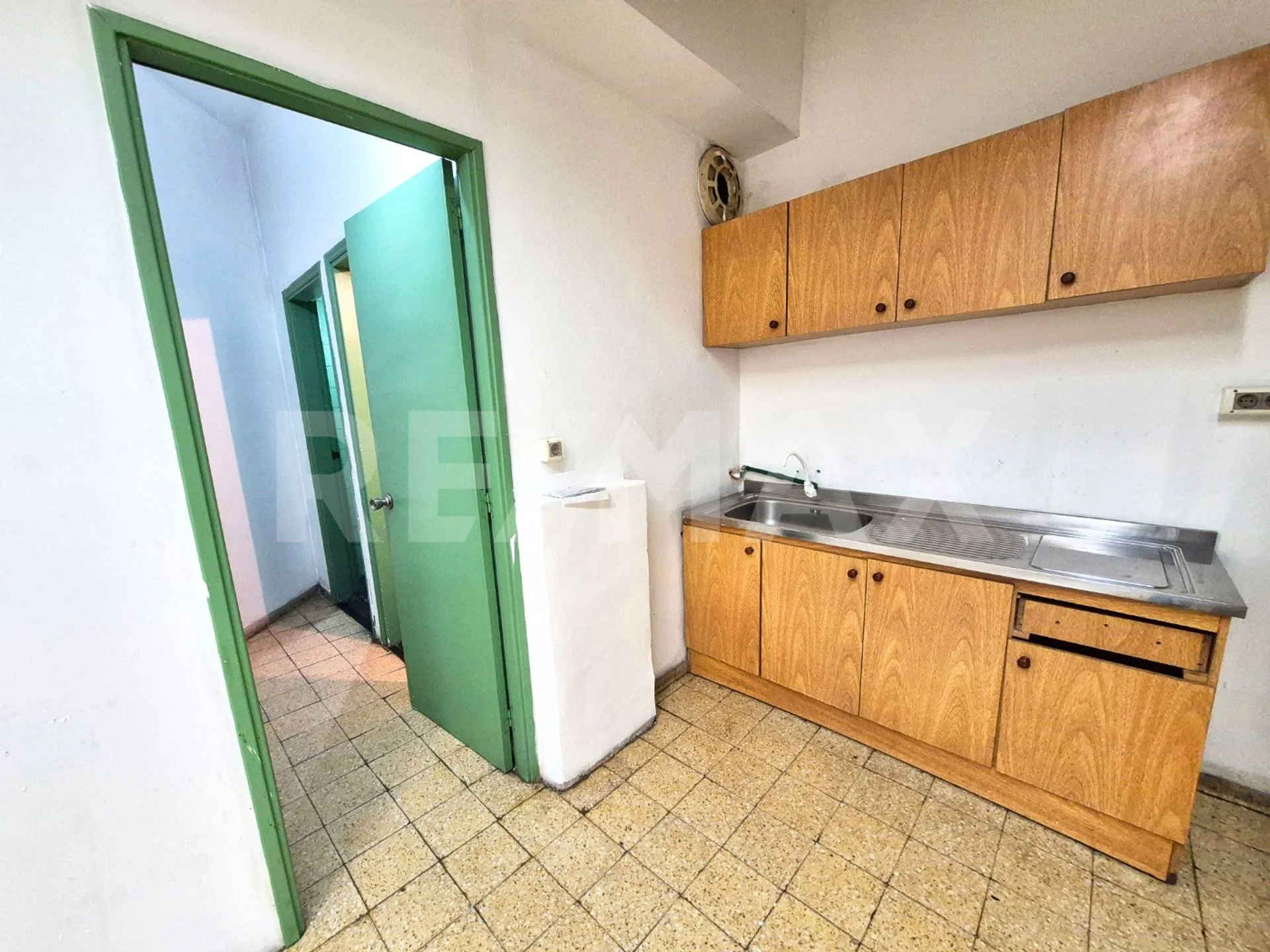Una kitchenette funcional, ideal para uso diario del personal o como espacio de apoyo, junto a un ambiente adicional que puede funcionar como comedor, oficina privada o sala de reuniones.