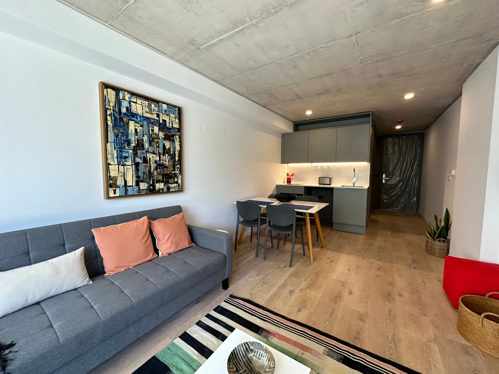 Unidad muy luminosa, con kitchenette integrada al ambiente, espacio para una barra y un baño completo. El apartamento se destaca por su diseño y estética, combinado con el uso de materiales de primera calidad.
