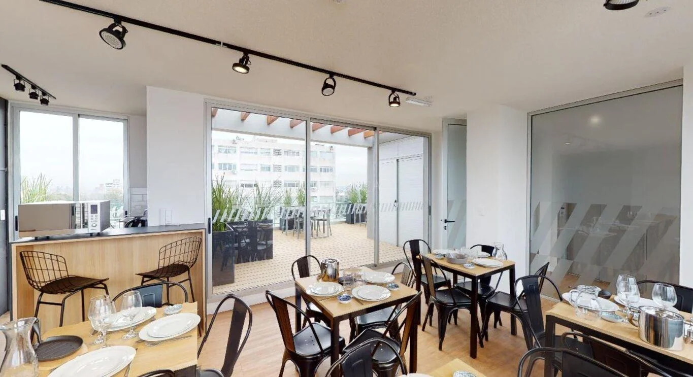 La propiedad cuenta con un dormitorio de buenas dimensiones, con gran entrada de luz natural y vista despejada, generando un ambiente agradable y silencioso pese a su ubicación estratégica. El living comedor se integra de forma armónica con la cocina, conformando un espacio práctico y bien proporcionado, con excelente iluminación natural y visuales abiertas hacia la ciudad.