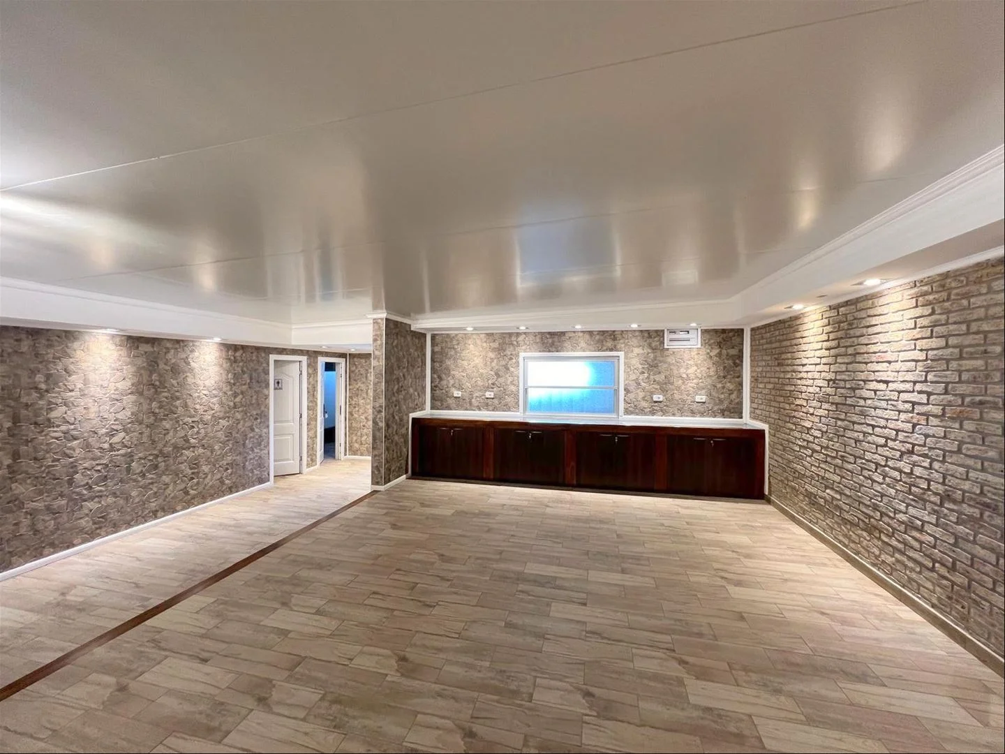 Planta baja: 430m2. Recepción, grandes salones open office, oficinas y patio, 2 baños con dos gabinetes y ducha c/u. Entrada vehicular la cuál se conecta con el salón principal. Previsión para la conexión de aires acondicionados, luces de emergencia y carteles de salida.