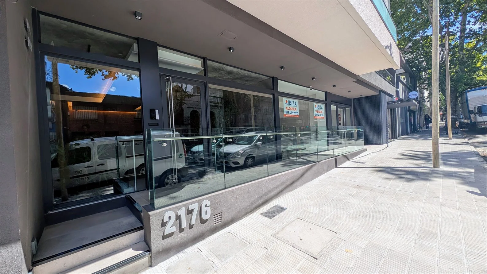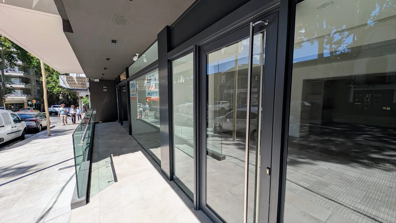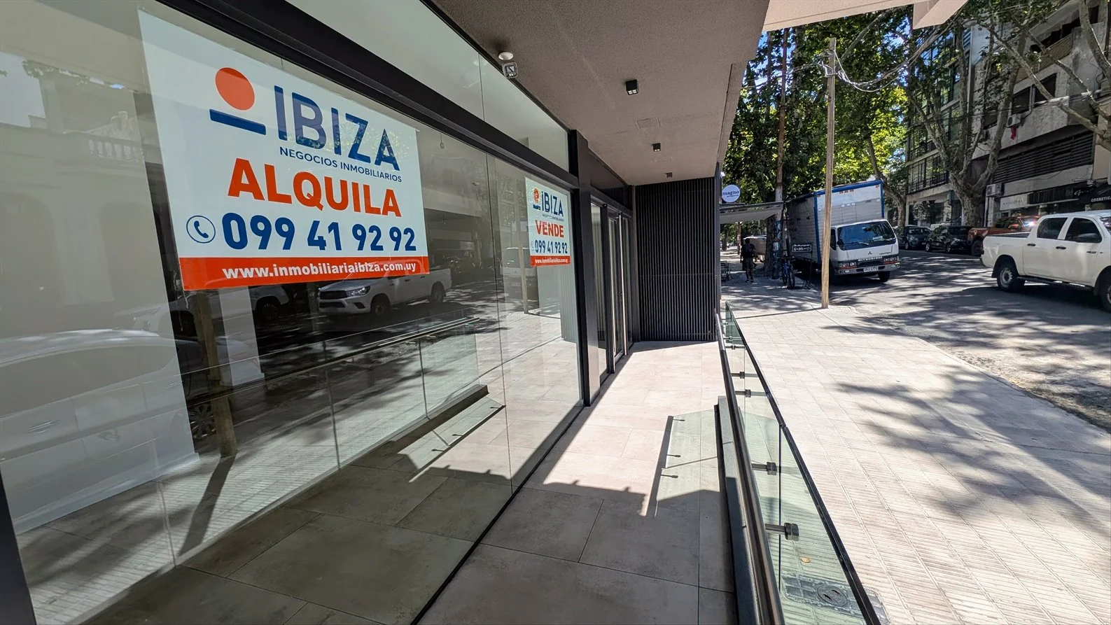 A ESTRENAR. Amplio Local comercial con vidriera de 9 metros de frente, sobre importante calle en el límite de Cordón y Parque Rodó.