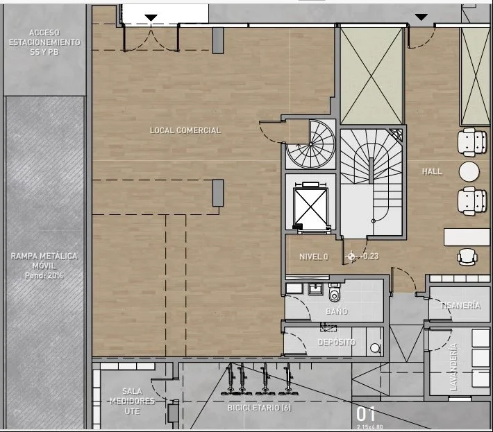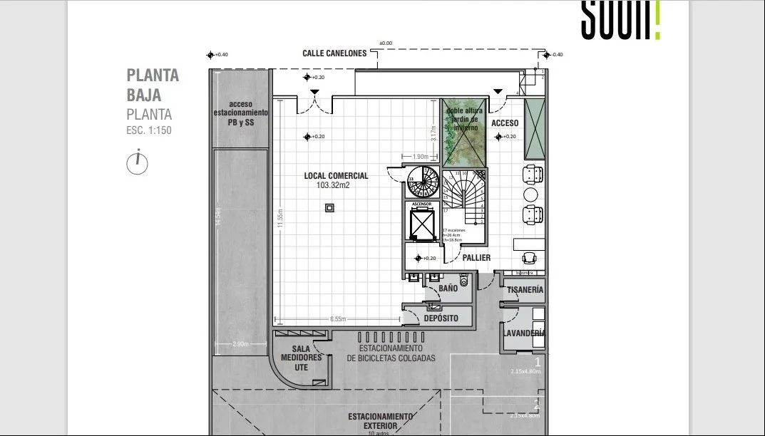 El local se compone de un área de 103 m2 a nivel de calle, mas 34 m2 de depósito en el subsuelo con acceso directo desde el local.