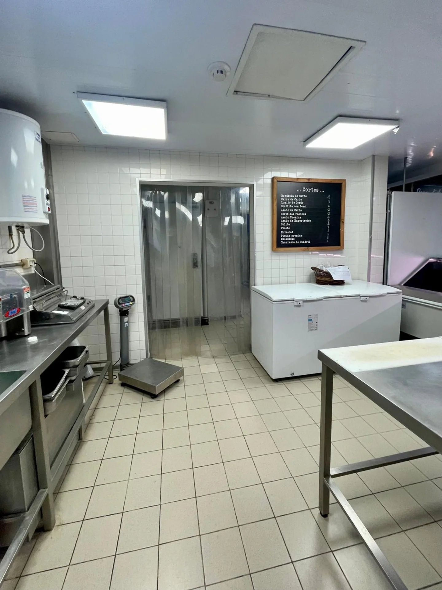 Hall de entrada con cerramientos de vidrios blindex y puerta de doble hoja para área de autoservicio, salón desarrollado en varios niveles con presencia de algunas columnas centrales, cielorraso de espuma aislante e iluminación empotrada, artefactos con tubos lux modernos y pisos de parquet.