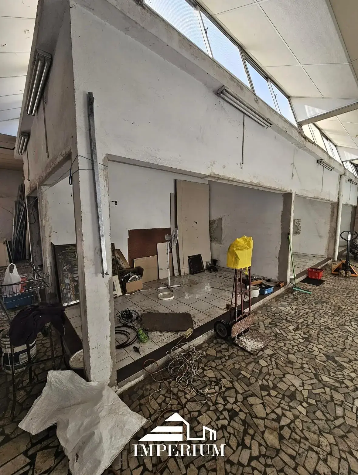 Al ingresar se forman dos pasillos laterales, ideales para desarrollar varios locales pequeños, oficinas o stands.