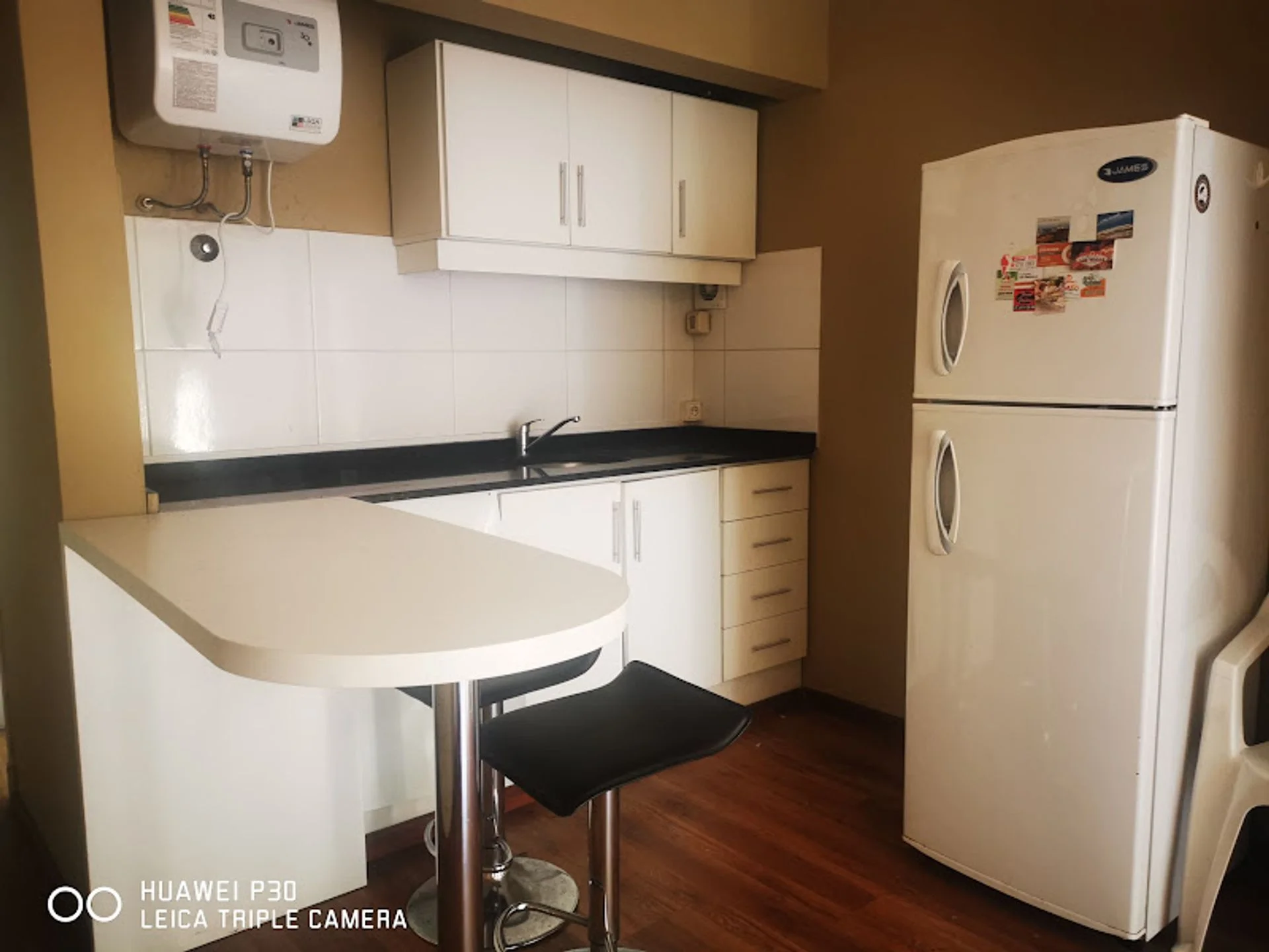 Complementan el espacio un práctico placard y una barra desayunadora.