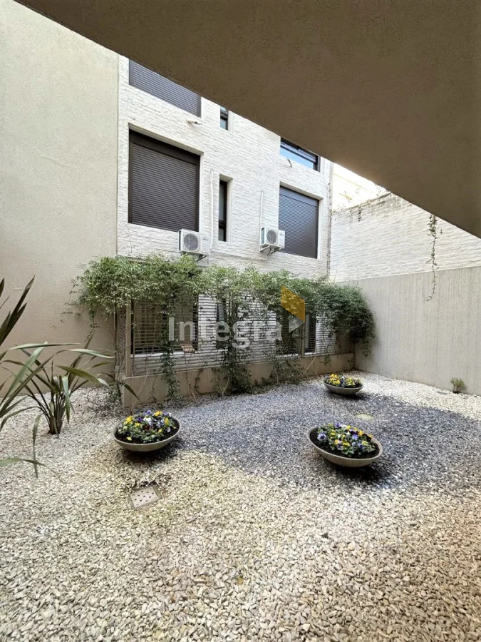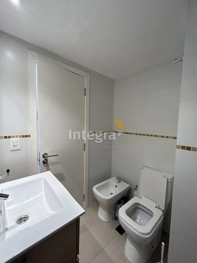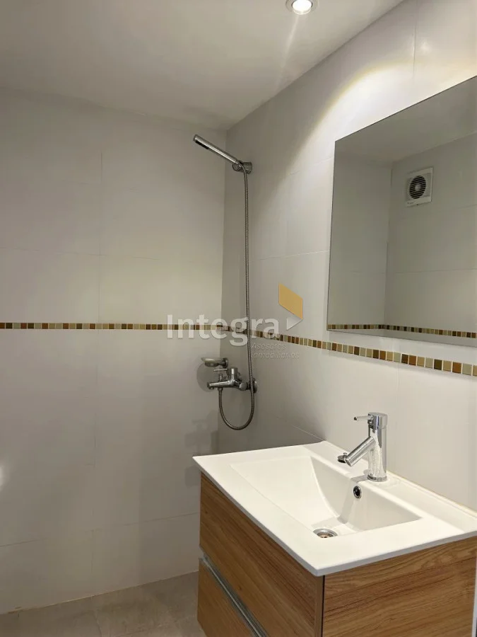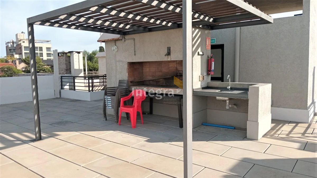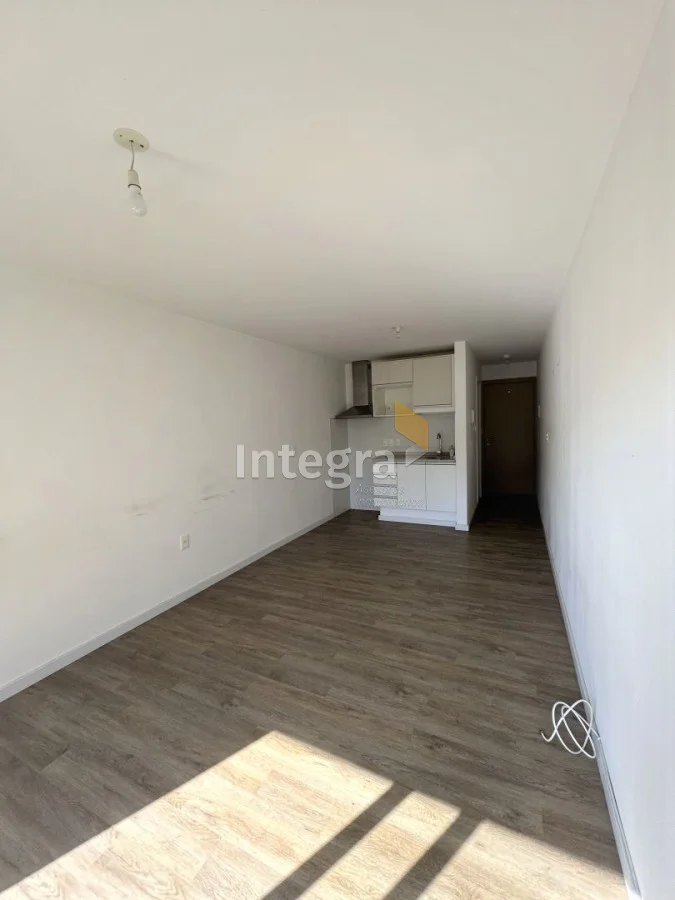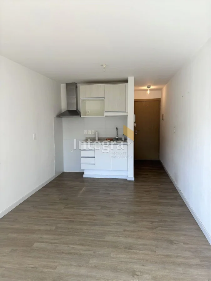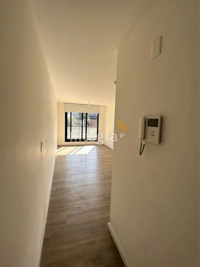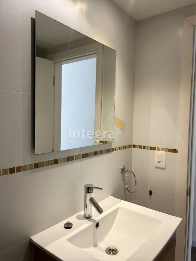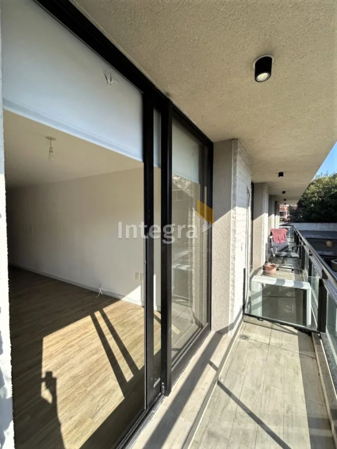 INTEGRA ALQUILA: Monoambiente en Malvin con balcón y garaje, a dos cuadras de la rambla y a metros da la Plaza Fabini. Unidad en 3er piso al contrafrente, orientación norte, bien iluminado. Baño completo, con espejo, cocina integrada con campana extractora y balcón.