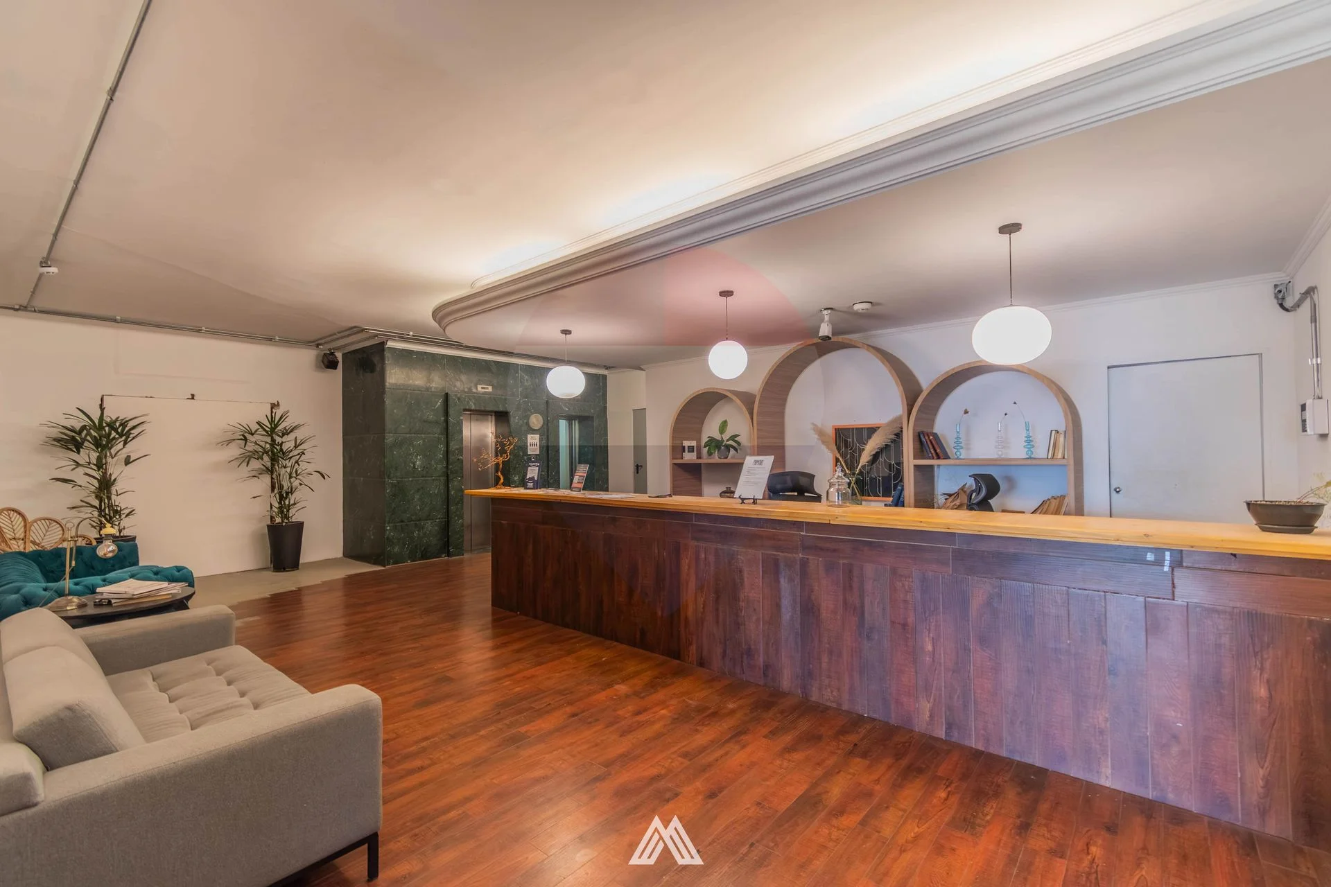 La unidad está ubicada en el sexto piso al frente y se destaca por su excelente luminosidad y vistas despejadas, ofreciendo un ambiente cómodo y agradable para trabajar.