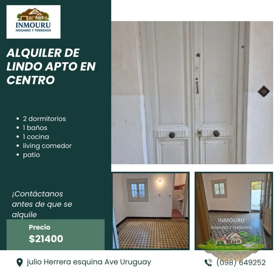 Alquilo amplio y acogedor apartamento en el Centro ubicado en la calle Julio Herrera esquina Ave Uruguay, cuenta con dos dormitorios amplios y ventilados, living comedor, cocina definida, baño completo con instalación para el lavarropas y patio. No se aceptan mascotas.