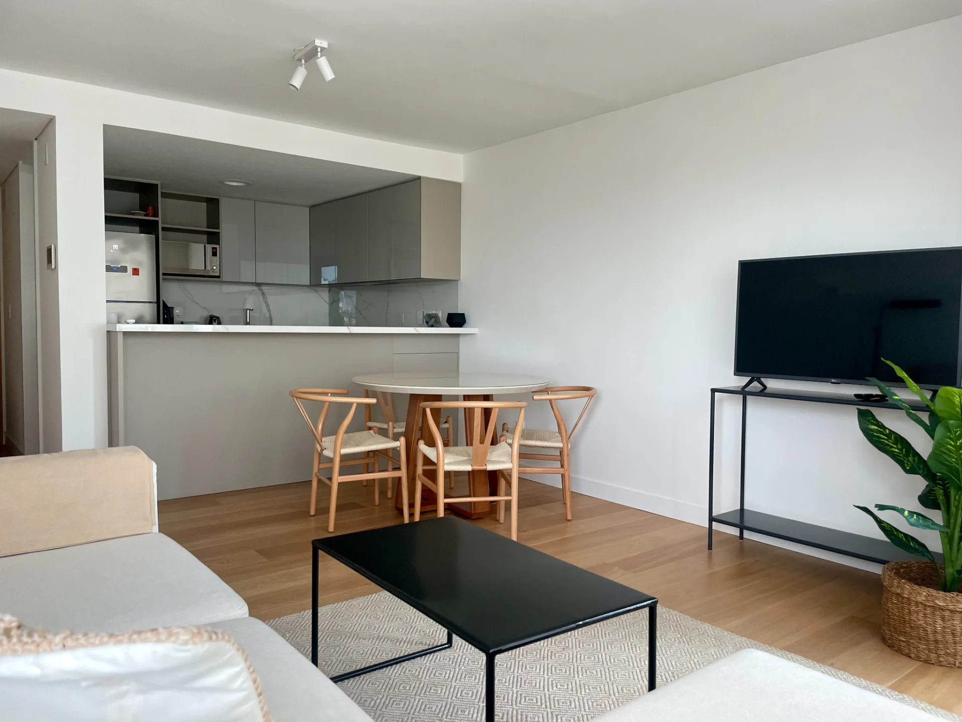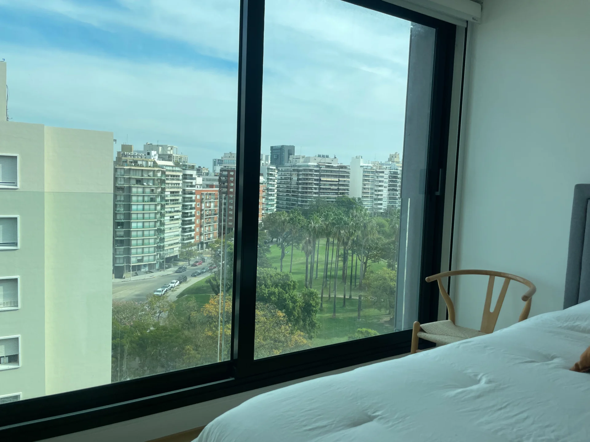 Viví frente al Parque Villa Biarritz y a pasos de la Rambla, en un moderno apartamento de 2 dormitorios y 2 baños completos (1 en suite con vestidor), cocina integrada con barra y un balcón con vista despejada al parque. Garage cómodo