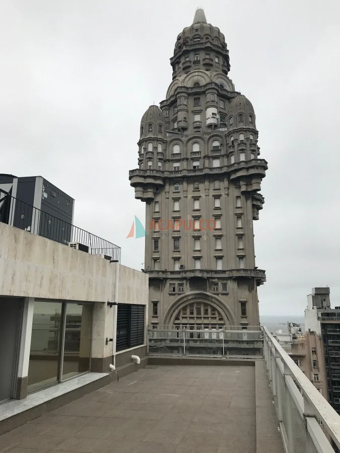 Amplia planta de 384m² muy versátil y luminosa. Grandes terrazas de 223m² que rodean toda la planta con vista a las calles Andes, 18 de Julio y Plaza Independencia.