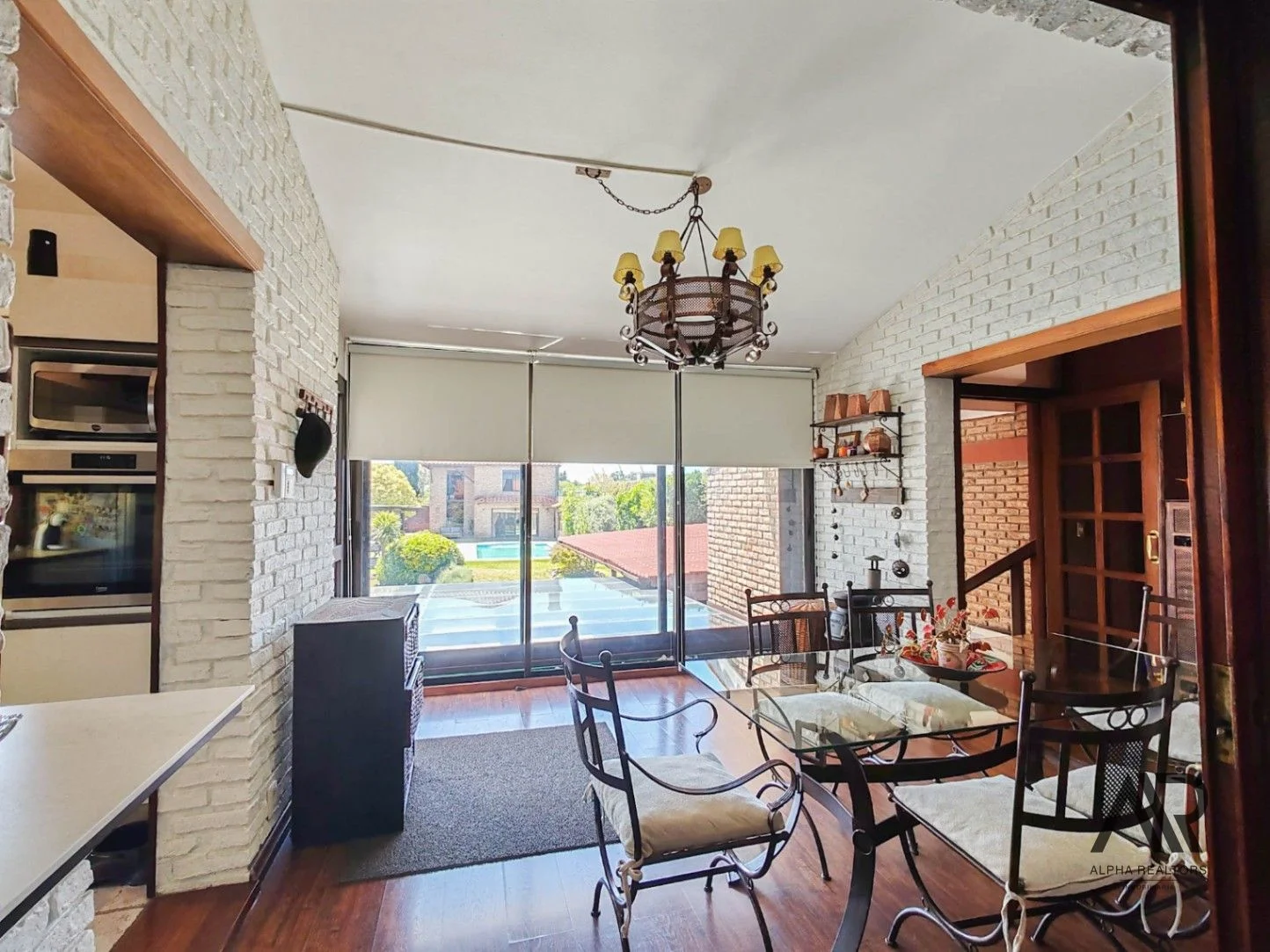 El comedor, con su gran ventanal hacia el patio y la piscina, invita a desayunos lentos, cargando todas las energías.