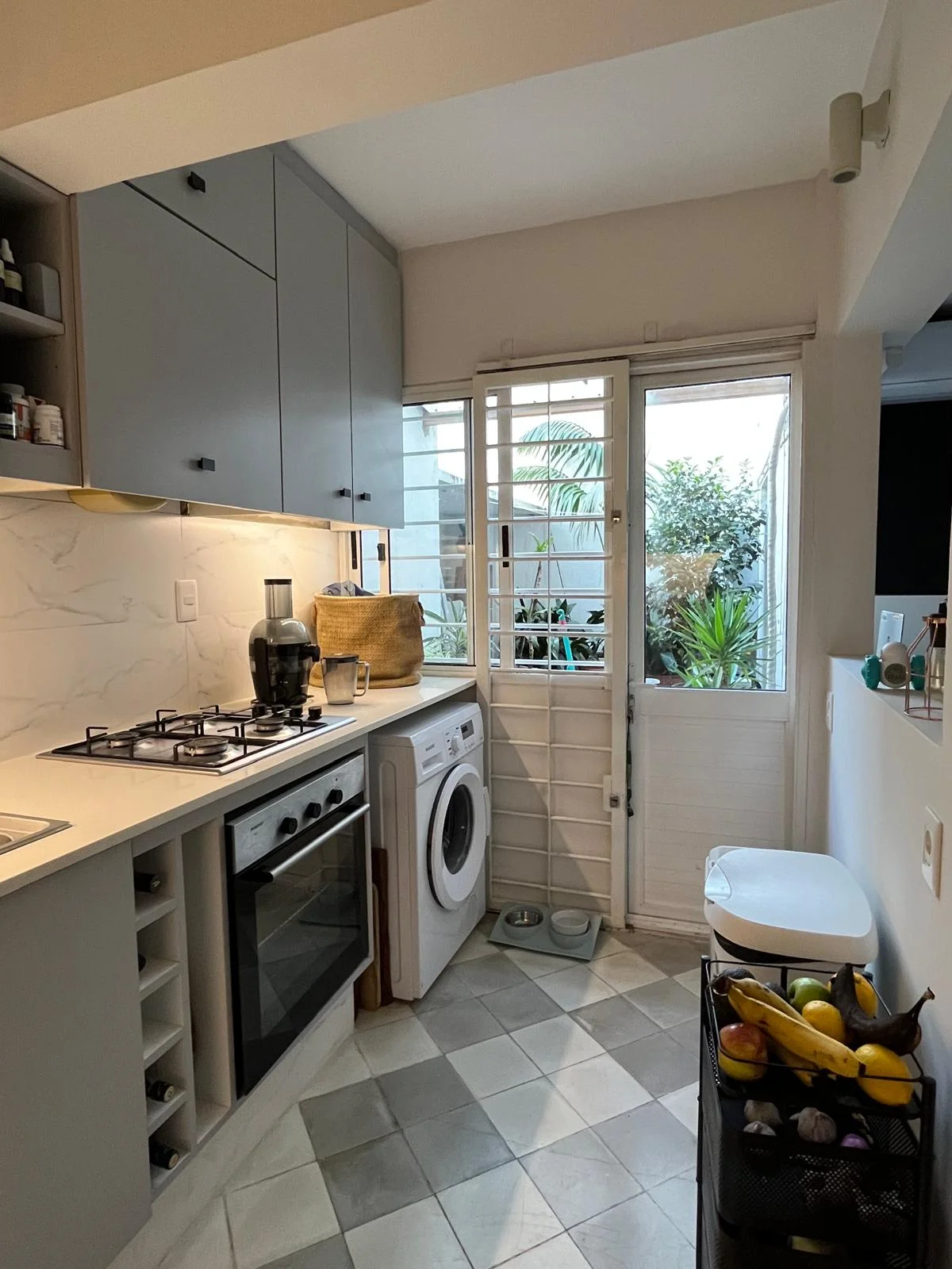 Cocina totalmente reciclada en 2022, con amplios placares, alacena, mueble lavadero e instalación para lavarropa y caldereta a gas. Salida directa al patio lavadero.