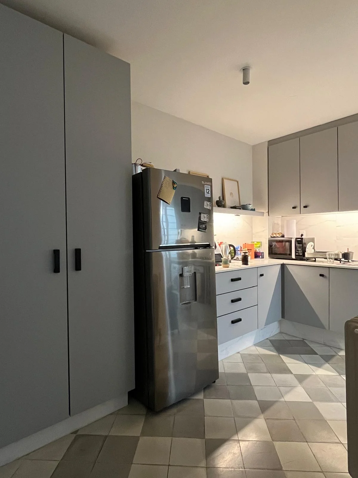 Tres dormitorios (uno de ellos integrado a la cocina, fácilmente reversible).
