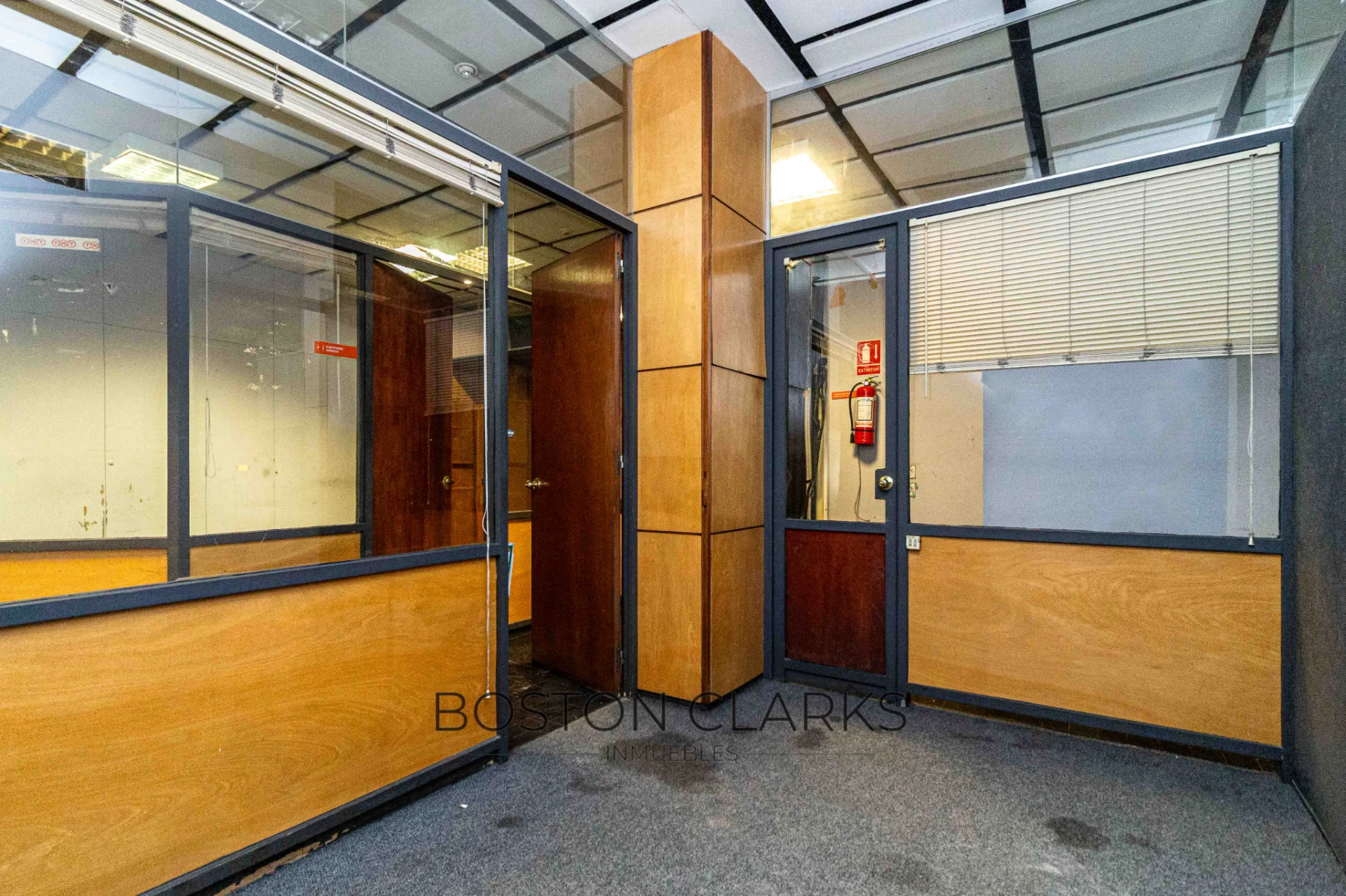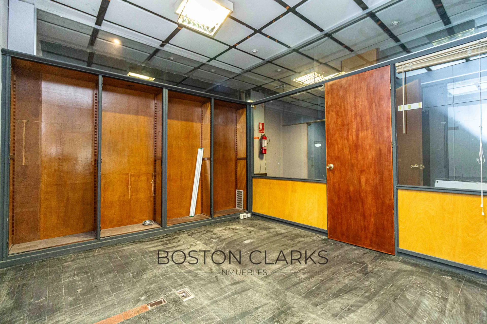 The property has 250 m² of interior space, defined offices, 1 full bathroom, toilet, storage room, and bars.