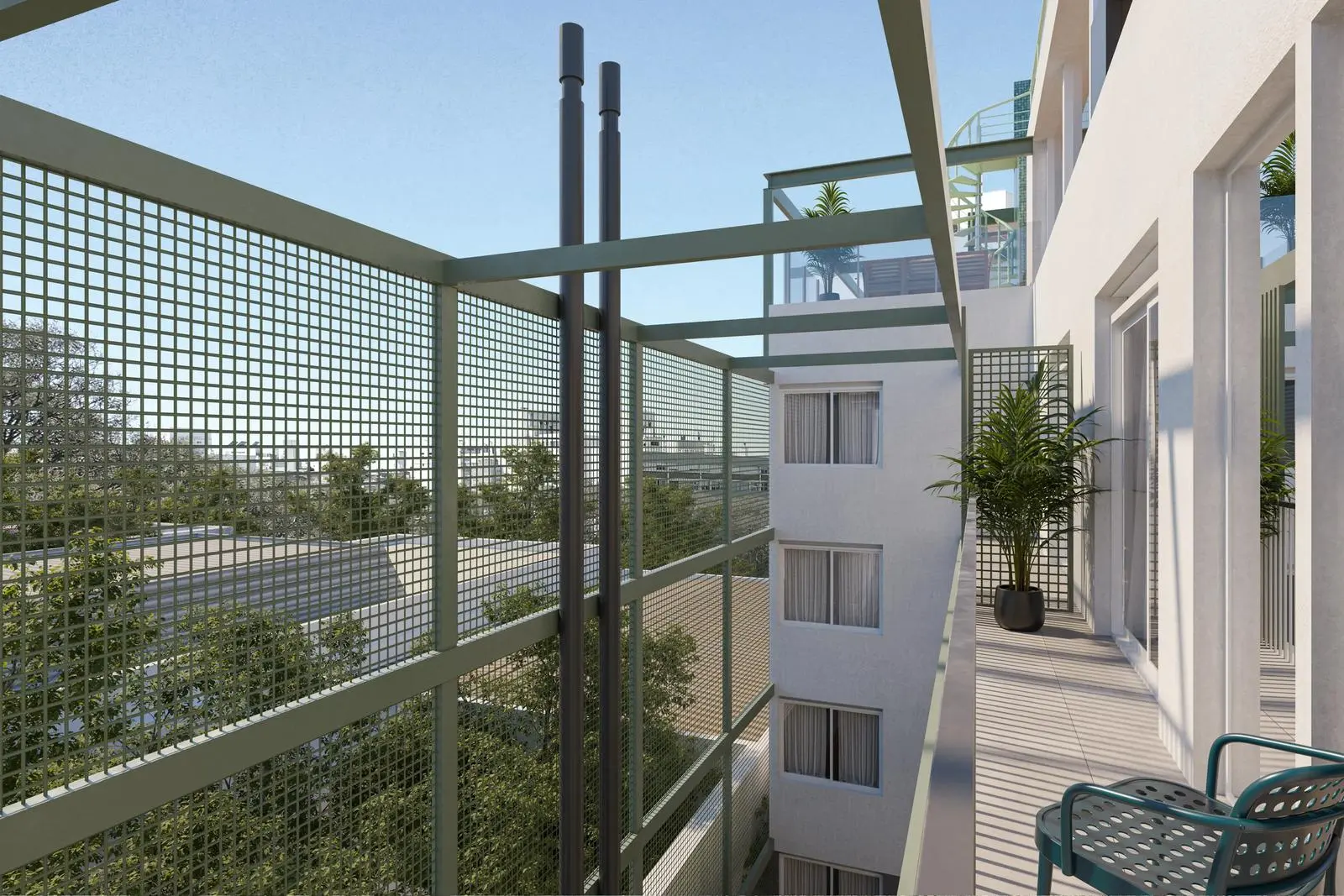 El edificio se desarrolla en 4 pisos y planta baja, con un total de 51 unidades y 28 garajes. Amenities y servicios destacados: Piscina de borde infinito con vistas despejadas Gimnasio totalmente equipado Barbacoa de uso común Parrillero al aire libre Mirador panorámico Solárium Laundry 8 parrilleros privados Ascensor Garajes opcionales