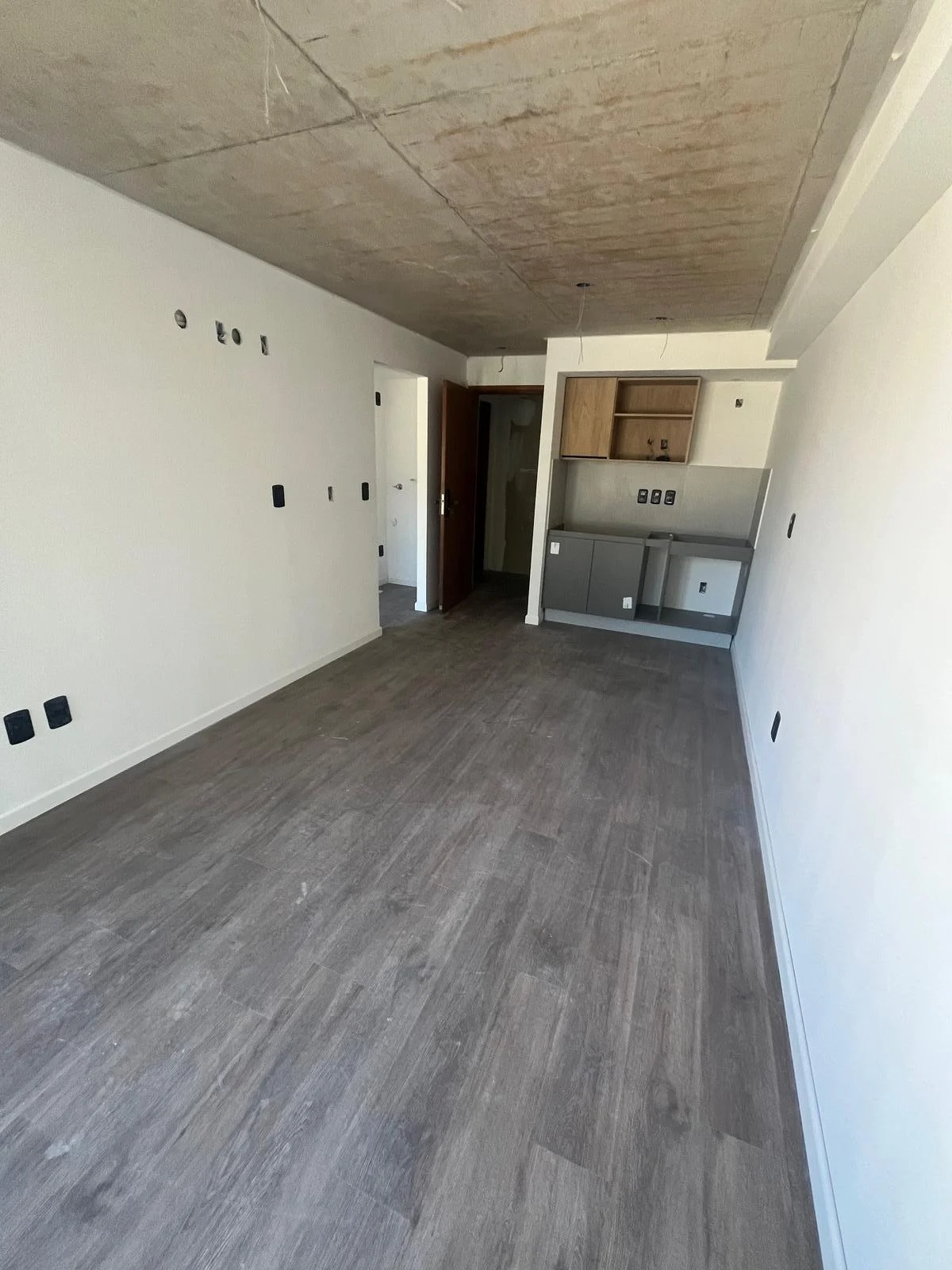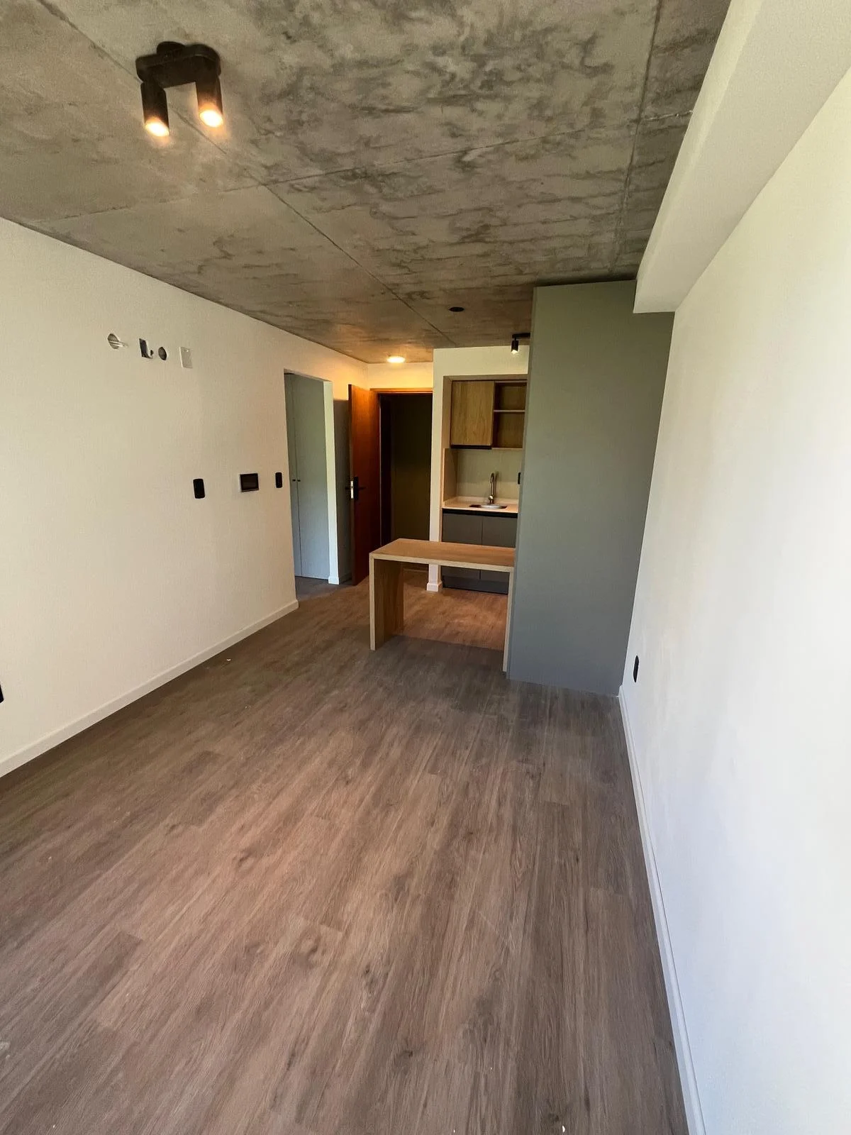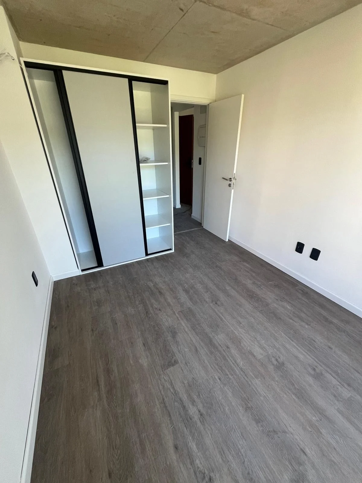 Apartamento a estrenar, dentro de la ley de vivienda promovida!!! Estar con salida a terraza, moderna cocina integrada equipada con horno, anafe y campana. Calefón y aire acondicionado en dormitorio y en living incluido. Incluye box de uso exclusivo en el mismo piso. Garajes disponibles. Sum con parrillero en el ultimo piso. Conexiones 4%
