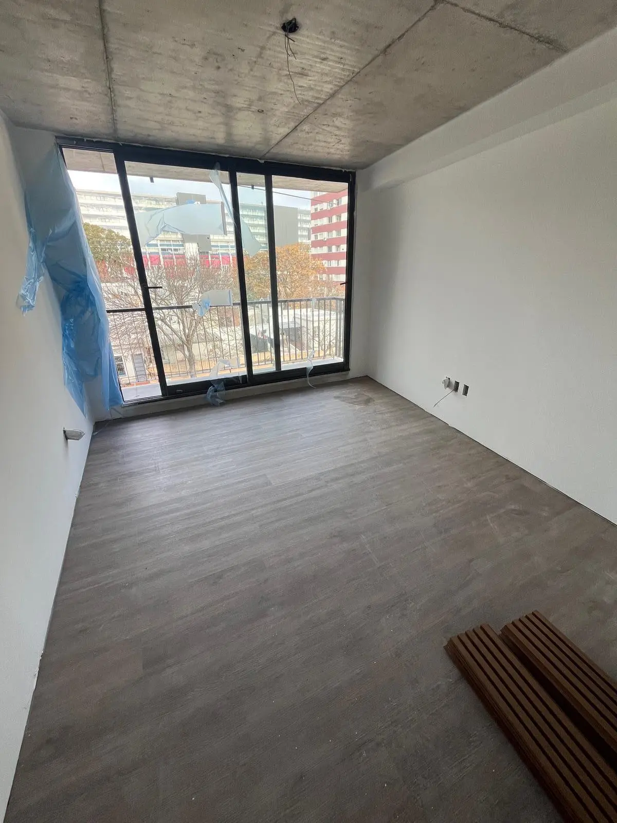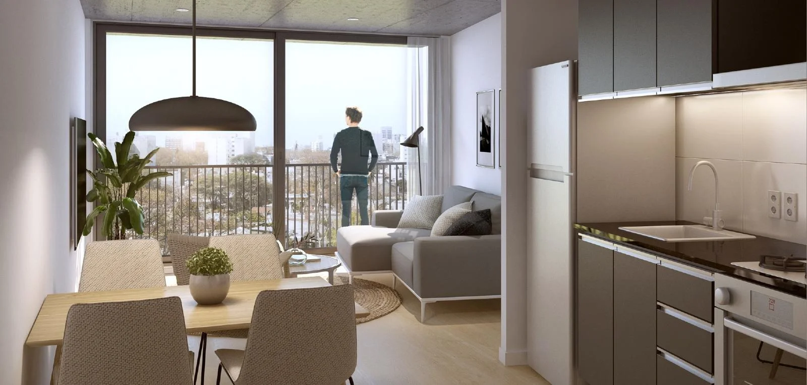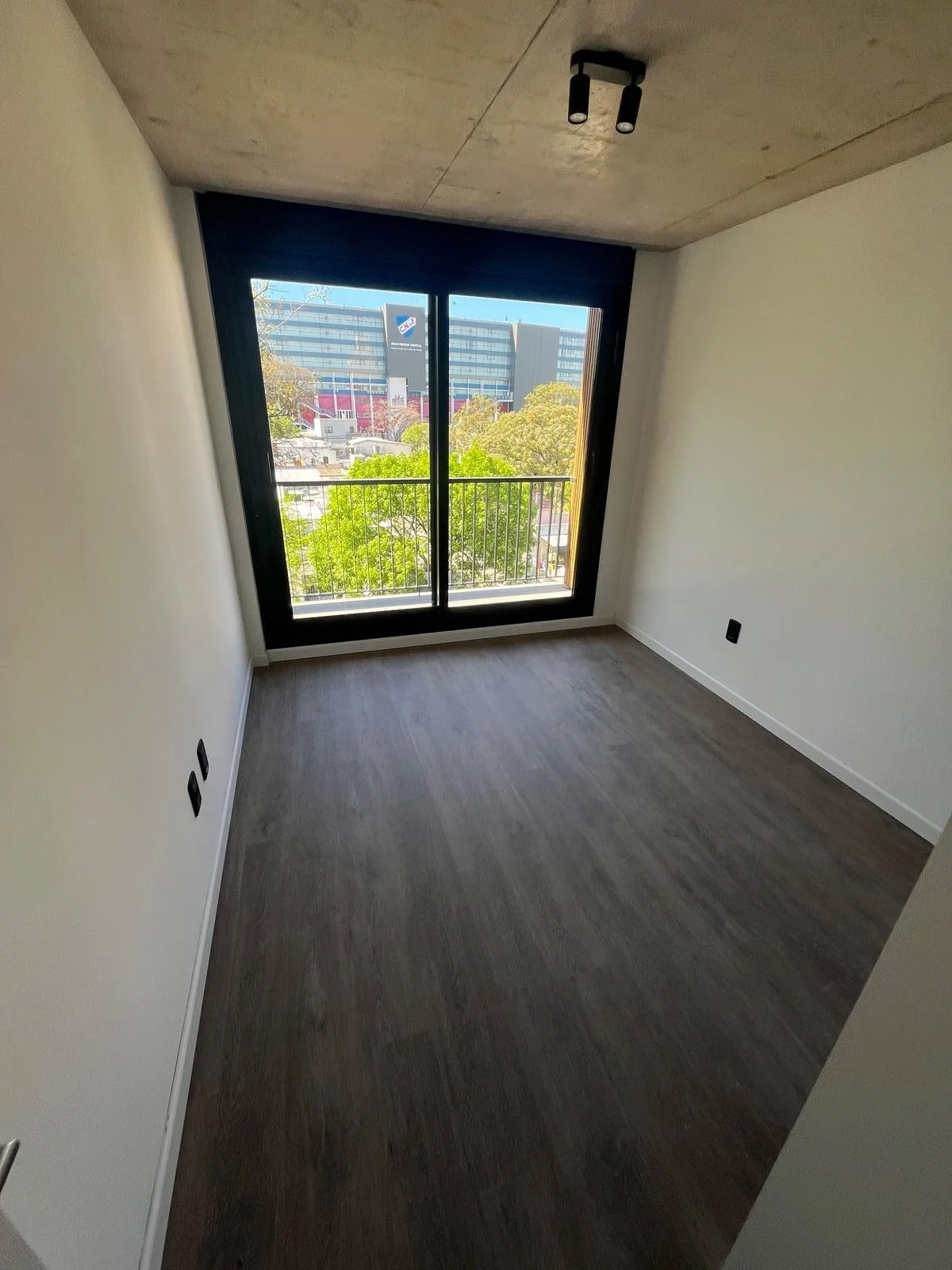 Apartamento a estrenar, dentro de la ley de vivienda promovida!!! Estar con salida a terraza, moderna cocina integrada equipada con horno, anafe y campana. Calefón y aire acondicionado en dormitorio y en living incluido. Incluye box de uso exclusivo en el mismo piso. Garajes disponibles. Sum con parrillero en el ultimo piso. Conexiones 4%