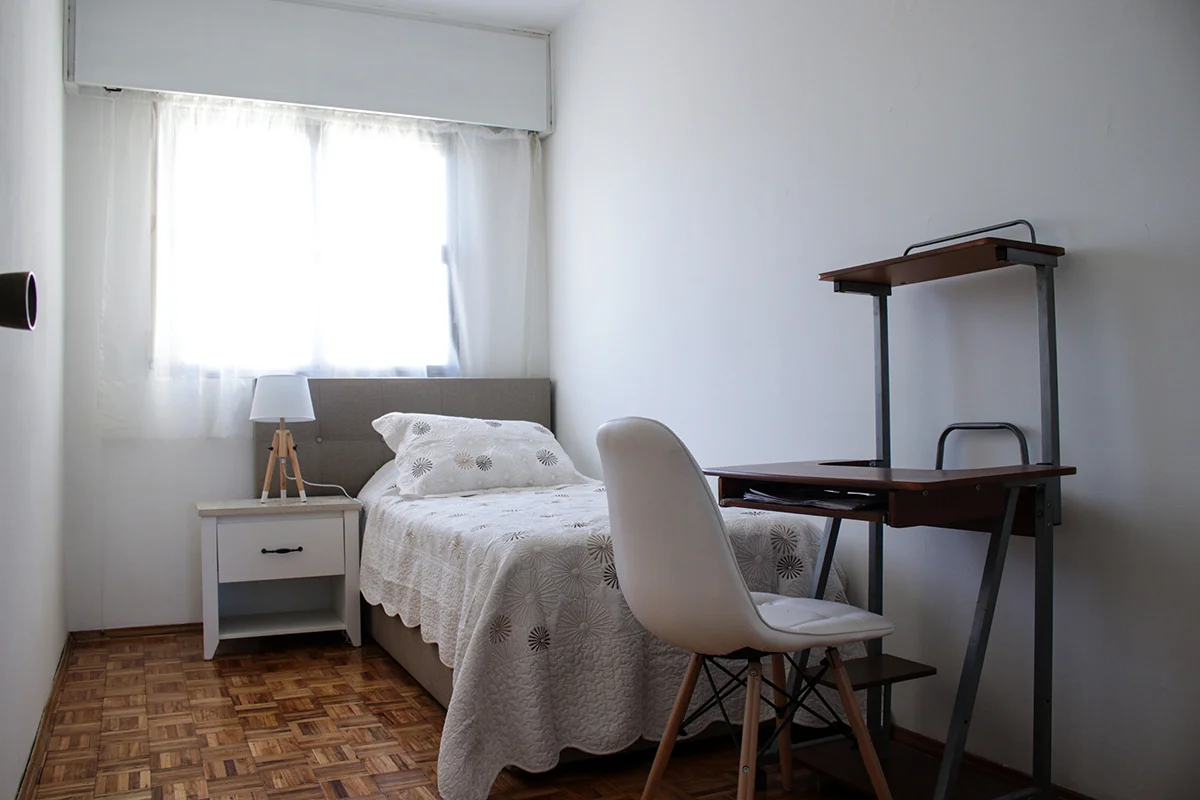 Ventanales amplios al frente y al fondo, con mucha entrada de luz, Cocina separada. Totalmente equipada con lavarropas, cafetera, tostadora, jarra electrica, menaje, vajilla completa para 6 personas. Comedor y living separados. Estar con escritorio.