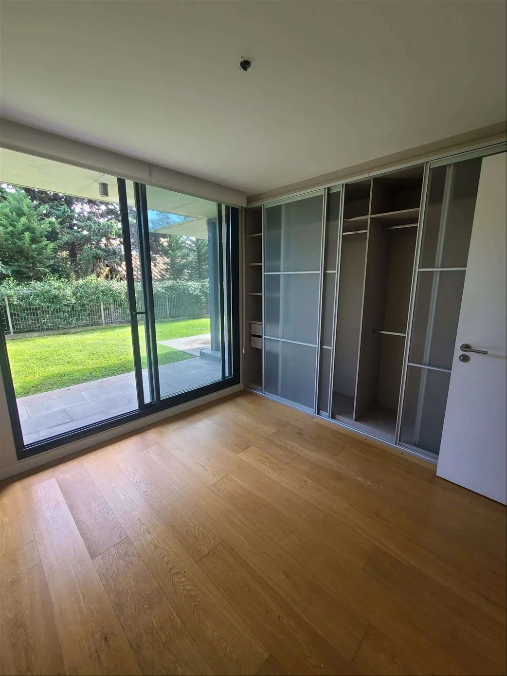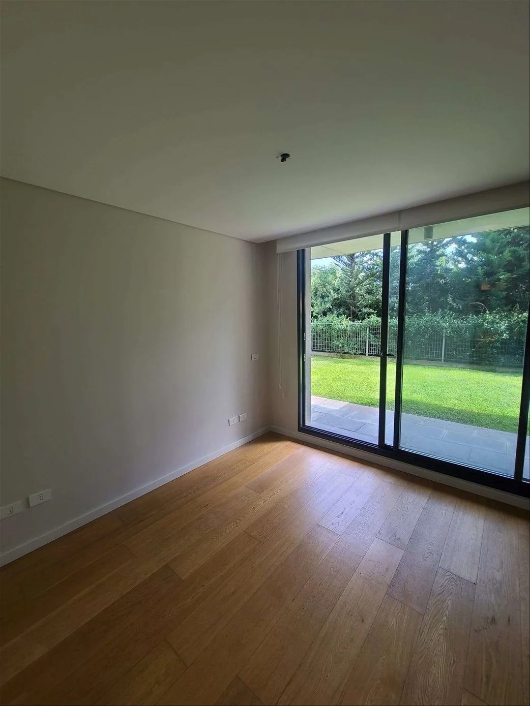 Ingresamos al apartamento y nos encontramos con un amplio living comedor con grandes ventanales con salida al hermoso jardín. Cocina de muy buen tamaña semi integrada con una barra desayunadora y muy buena profusión de placares. Cuenta con anafe y horno empotrados y campana extractoa. Salida a terraza lavadero con conexión para lavarropas y calefón de 80 lts. Pasamos por un pasillo donde encontramos un baño completo de muy buen tamaño y un dormitorio con excelentes placares y con ventanales con salida al jardín. Luego tenemos el dormitorio principal con vestidor y gran baño en suite, el dormitorio también tiene un gran ventanal con salida al jardín.