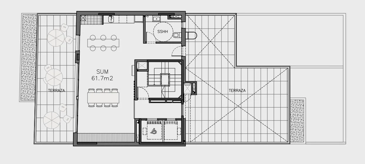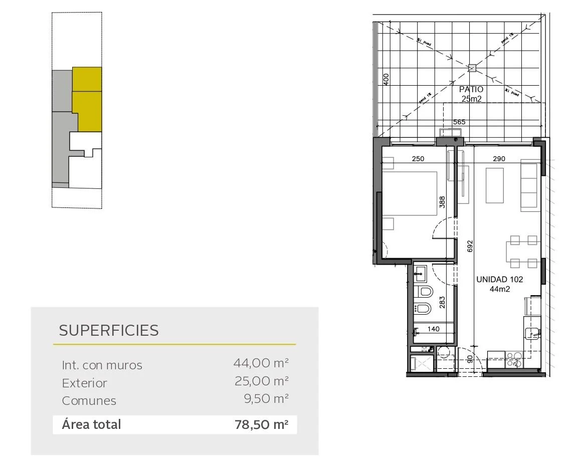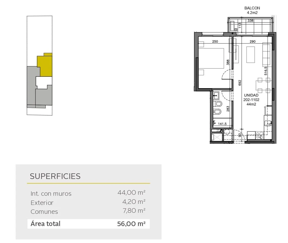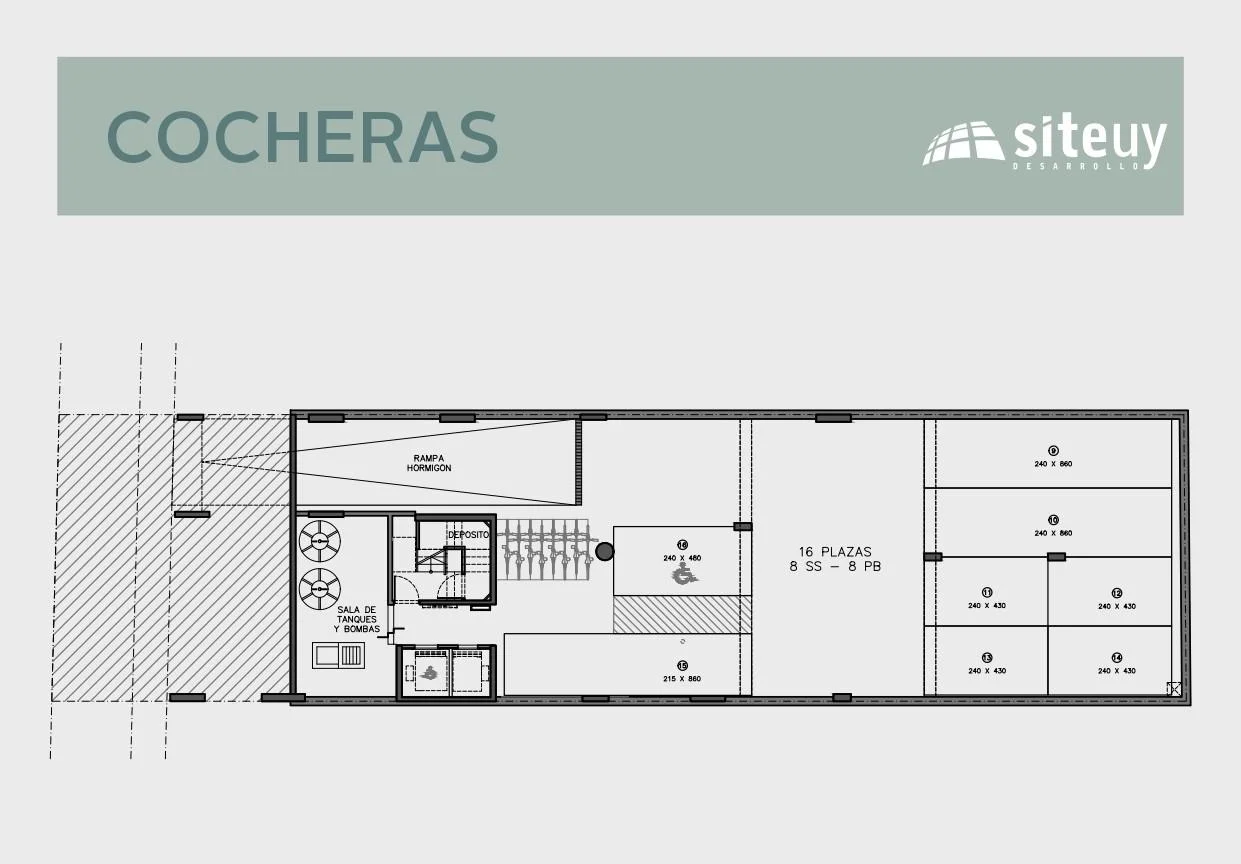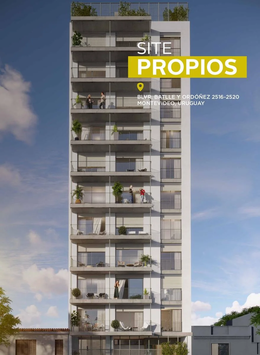 SITE PROPIOS es un proyecto de 32 unidades distribuidas en 13 niveles, siendo 21 apartamentos de 1 dormitorio y 11 apartamentos de 2 dormitorios. Cuenta con 16 cocheras distribuidas en subsuelo y planta baja. El edificio cuenta con orientación Este-Oeste, está realizado en construcción tradicional con terminaciones de calidad: hormigón visto, aluminionatural y cristal. Cuenta con amenities como SUM cerrado con parrillero y dos amplias terrazas con distinta orientación. Tiene Iluminación y ventilación natural, máximo asoleamiento