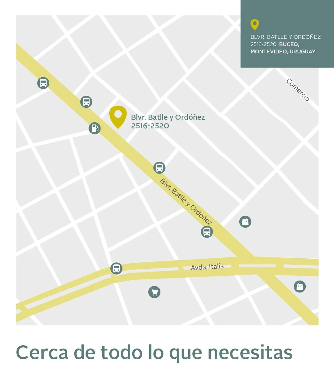 SITE PROPIOS se emplaza sobre Bvar. José Batlle y Ordóñez a pocos metros de Avenida Italia, en un área urbana en constante crecimiento, excelente conexión y transporte. Es una zona residencial con muchos servicios e infraestructura, centros de salud y educativos, y áreas verdes de esparcimiento.