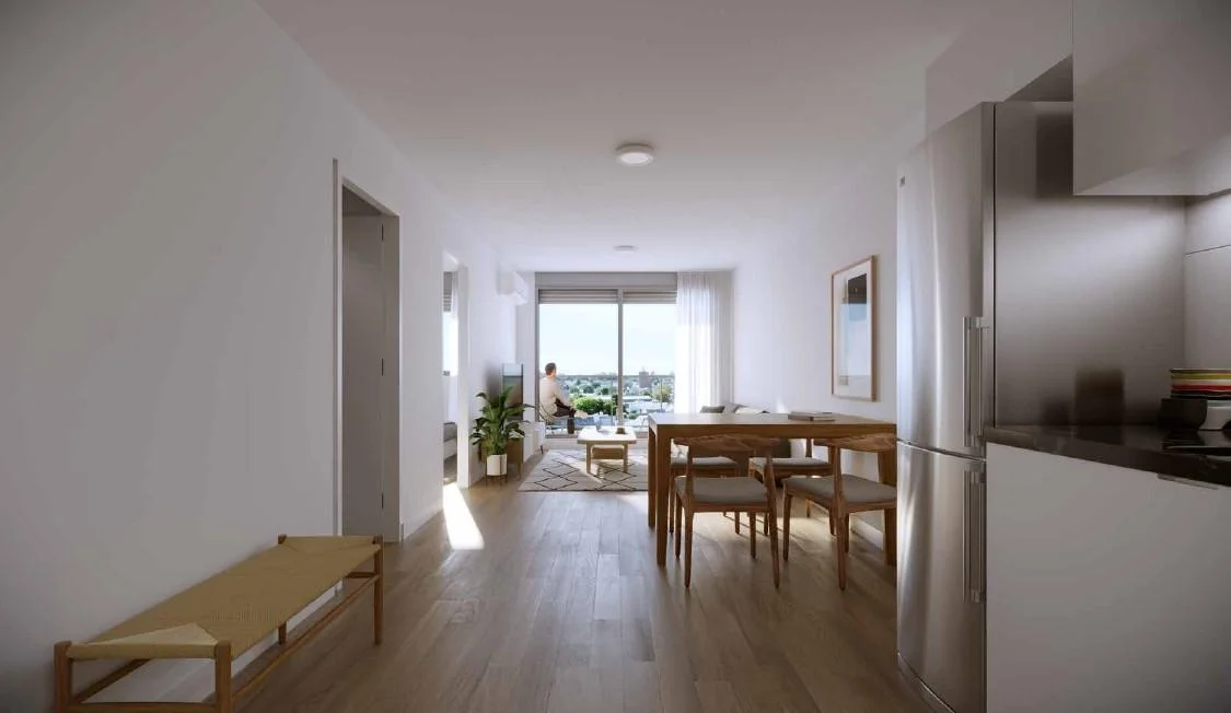 Al ingresar al apartamento nos encontramos con el living comedor con cocina integrada con salida a una cómoda terraza. A la izquierda contamos con un baño completo y un dormitorio con placard.