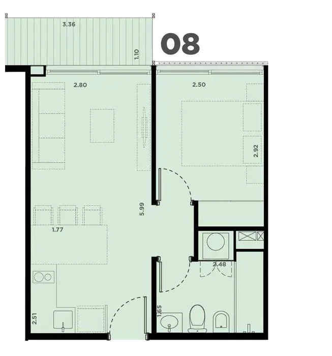 Sus amplias aberturas aseguran gran iluminación natural y cuentan con cortinas de enrollar ya instaladas. Cocina equipada con muebles de calidad y mesada de cuarzo. Los pisos vinílicos tipo madera aportan calidez y durabilidad, mientras que las terminaciones y materiales elegidos garantizan una estética moderna y de fácil mantenimiento.