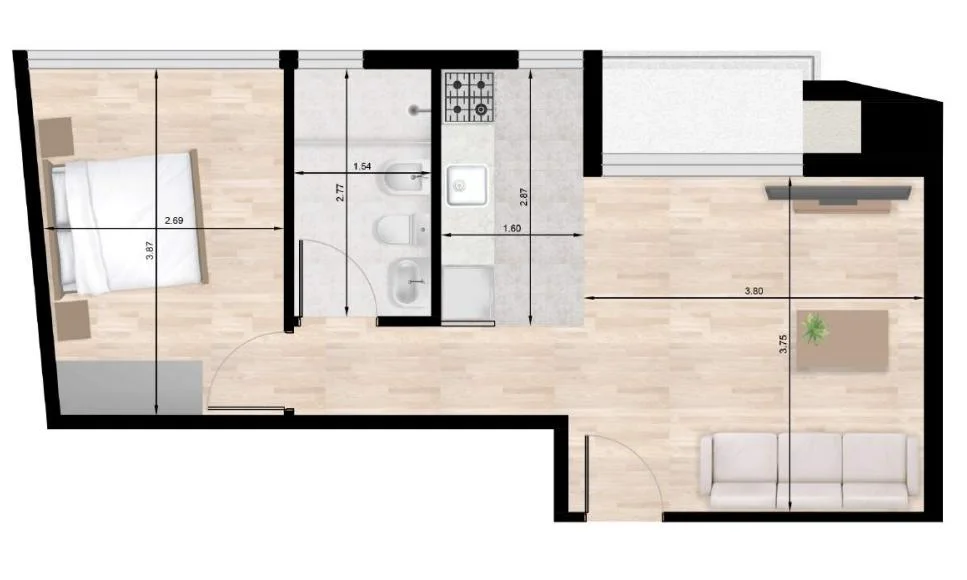 67 apartamentos con terraza y parrillero propio /13 unidades - monoambientes / 45 unidades - 1 Dormitorio / 5 unidades - 2 Dormitorios / 4 Duplex - 2 Dormitorio
