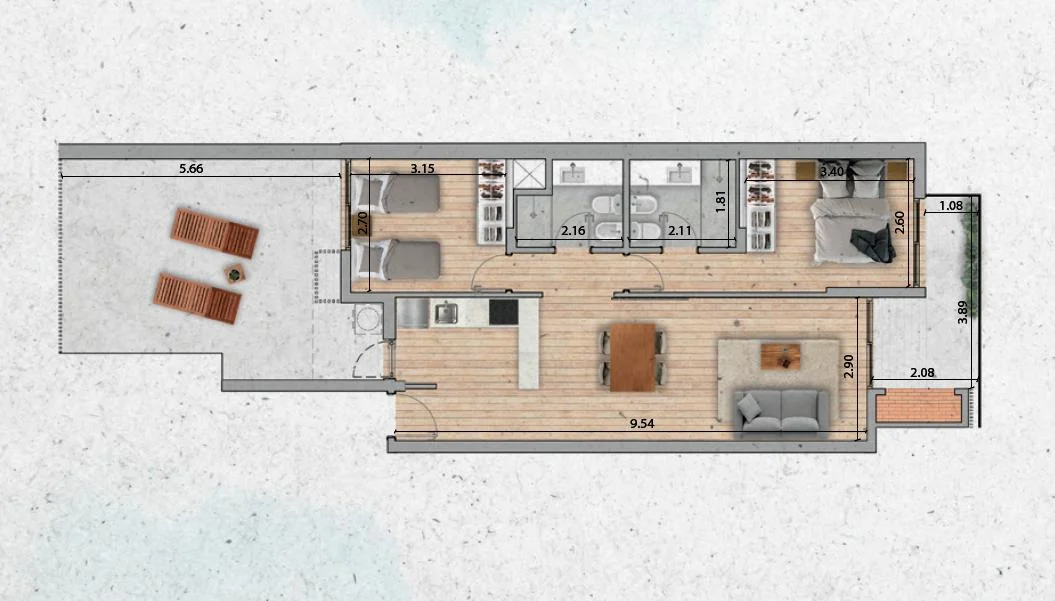 Cada unidad fue diseñada para aprovechar al máximo cada metro, ofreciendo ambientes cómodos y eficientes.