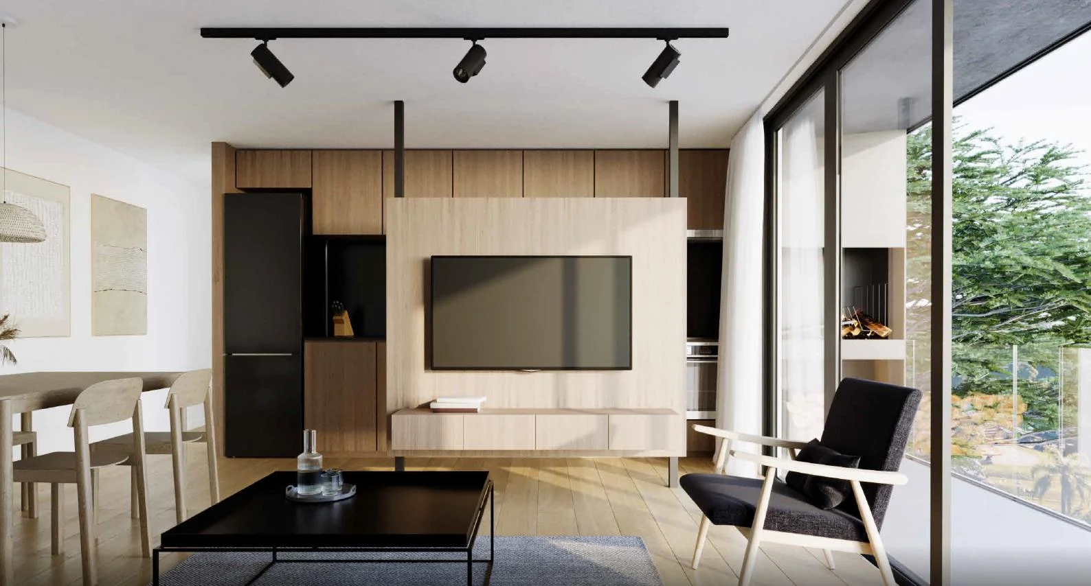 Las terminaciones demuestran la calidad: mesadas tipo Dekton, pisos de madera importados de FB Holanda, griferías italianas y calefacción por losa radiante que aporta confort todo el año. La cocina se entrega completamente equipada con línea Samsung, incluyendo horno, anafe y campana, lo que garantiza practicidad y un nivel superior de equipamiento.