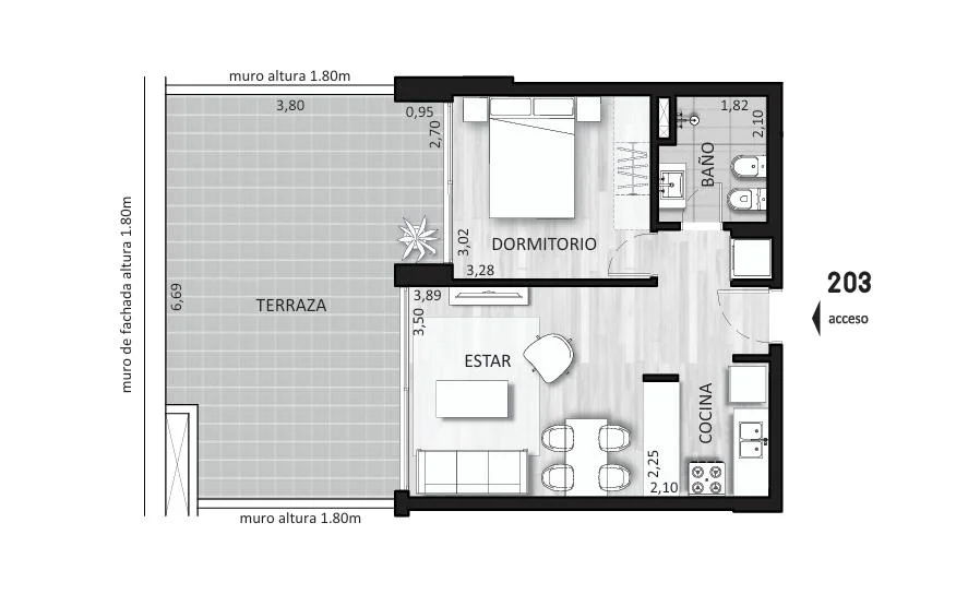 Cada residencia se entrega con aberturas exteriores y barandas en elegante aluminio anodizado, pisos vinílicos de alta calidad en estar y dormitorios, y cortinas de enrollar para mayor comodidad térmica y lumínica. Los baños y cocinas se destacan por sus pisos y revestimientos en cerámica, además de mesadas en granito y mármol que aportan un toque de distinción. El living-comedor se encuentra integrado con cocina.