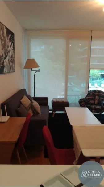 El inmueble destaca por su cocina totalmente equipada, que incluye microondas, tostadora, sandwichera, jarra eléctrica, anafe, horno y heladera. El espacio de estar es acogedor y cuenta con un sillón y mesa ratona, perfectos para el relax. Además, la propiedad ofrece comodidades como dos baños, un escritorio y un lavadero. La seguridad y el confort están garantizados con sistemas de cámaras CCTV, alarma y una puerta de seguridad. Los residentes pueden disfrutar de amenities excepcionales como barbacoas, piscinas abiertas y cerradas, gimnasio, salón de fiestas y un amplio área verde.