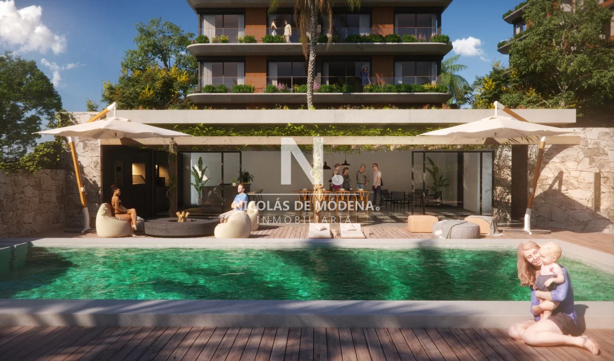 Apartamento en Carrasco - Montevideo Despertarte con la brisa del bosque y el sonido del mar. Sin irte de la ciudad, a sólo a unos semáforos de la escuela, del trabajo, del club, de todos lados. Con una ubicación sobre la primera línea al mar, ante una bifurcación de aire y playa conectada con la vida de la ciudad. Un lugar donde se respira aire puro y donde su inigualable vista transforma cada momento en una experiencia de vida inmejorable. Unidad de 2 Dormitorios 1 Baños , con capacidad para 2 personas Cocina : Amplia, Living Comedor ,Piscina Si Superficie Propia : 60 m2 + 3m 2 de terraza Superficie Total : 72 m2 Incluye cochera en planta baja Consulte con nuestros asesores. Referencia Interna : Tera-25662