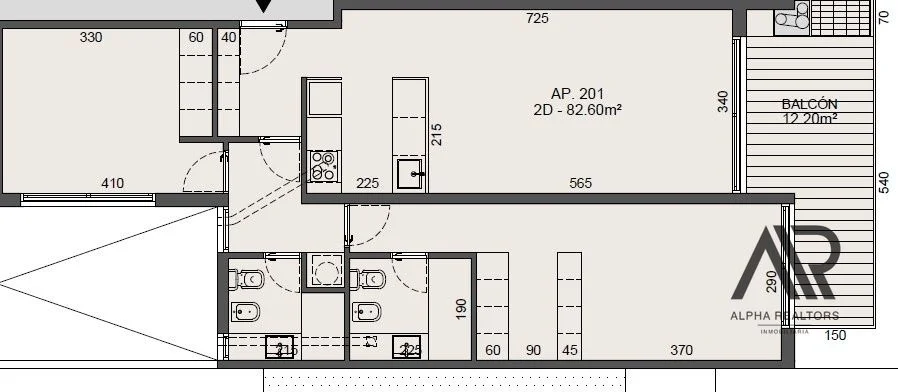 • Estar comedor al frente con cocina integrada, y salida a balcón con parrillero.