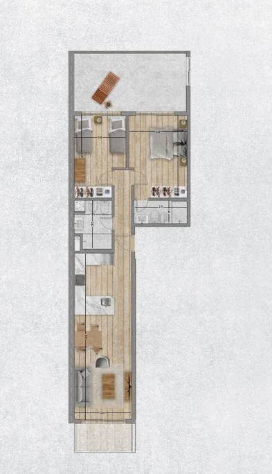 Se desarrolla en 4 niveles con un diseño moderno y funcional. En planta baja se ubican las cocheras, mientras que los niveles 1, 2 y 3 se encontrarán las unidades de 1 y 2 dormitorios, completando un total de 24 unidades. En la azotea, los residentes podrán disfrutar de un espectacular rooftop con parrillero y solárium.