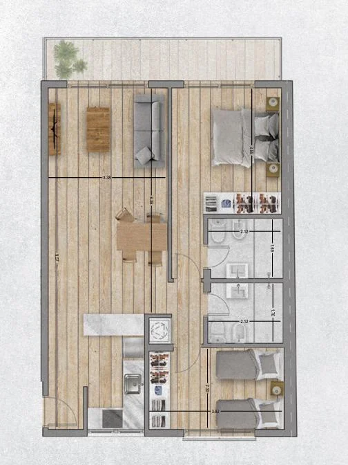 Cada unidad ha sido diseñada para optimizar al máximo los espacios, garantizando comodidad y estilo en todos sus ambientes. Los dormitorios se entregan con placares en melamina de alta calidad, además contarán con cortinas de enrollar monoblock en aluminio con piezas inyectadas en poliuretano, reforzando aún más la eficiencia energética del hogar.Las aberturas exteriores, en aluminio anodizado con doble vidrio hermético (DVH), aseguran un excelente aislamiento térmico y acústico, aportando confort durante todo el año.