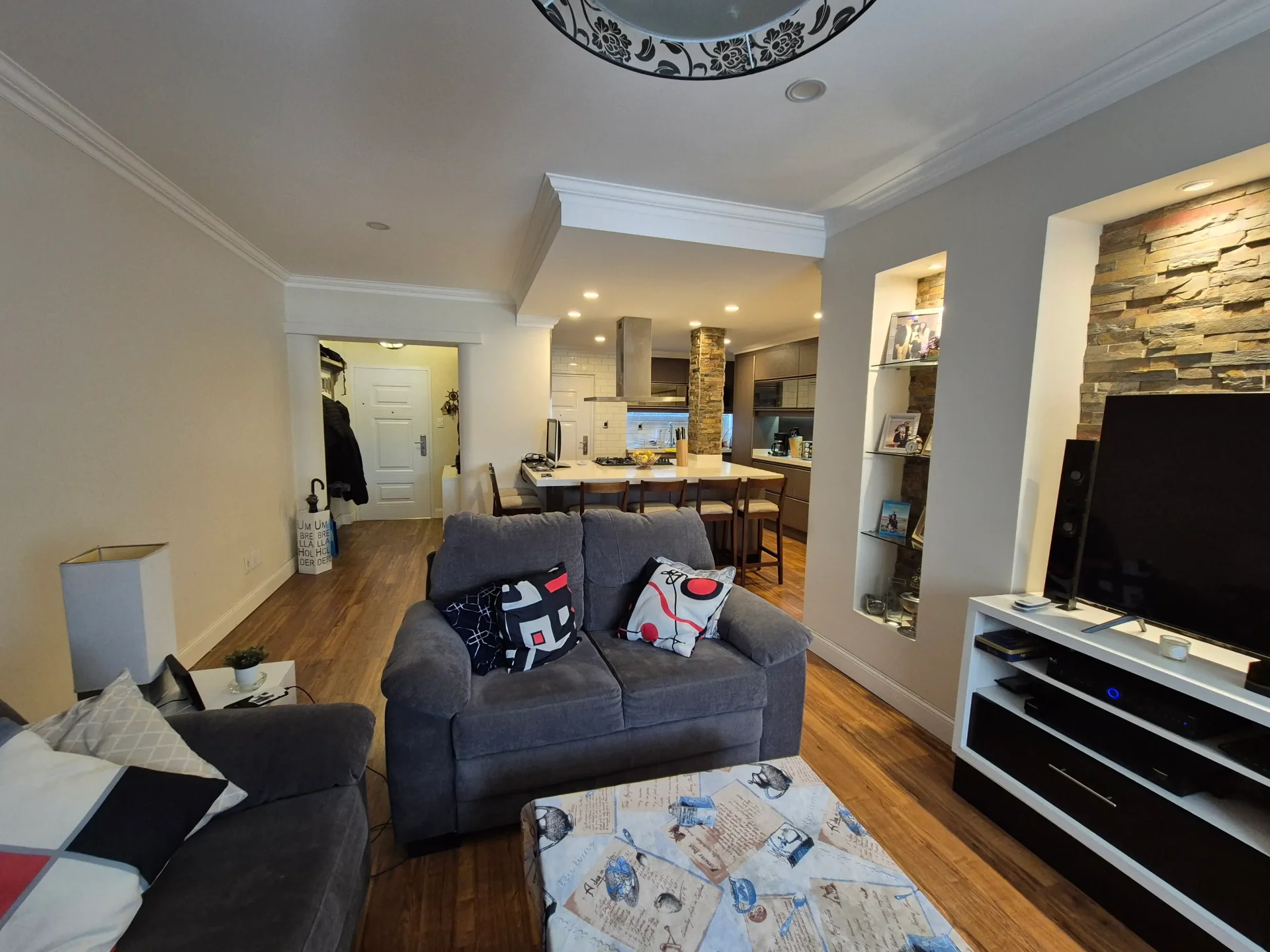 Ingreso a living comedor moderno con ventanas al frente que dan hacia la calle Andes.