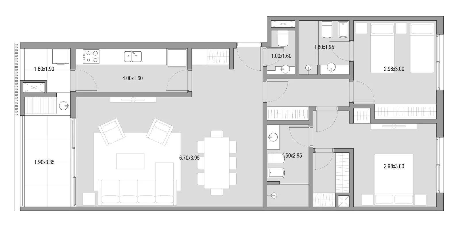 Dispone de un cómodo living comedor con acceso a una terraza al frente de 12 m² con parrillero, pileta, y lavadero independiente.