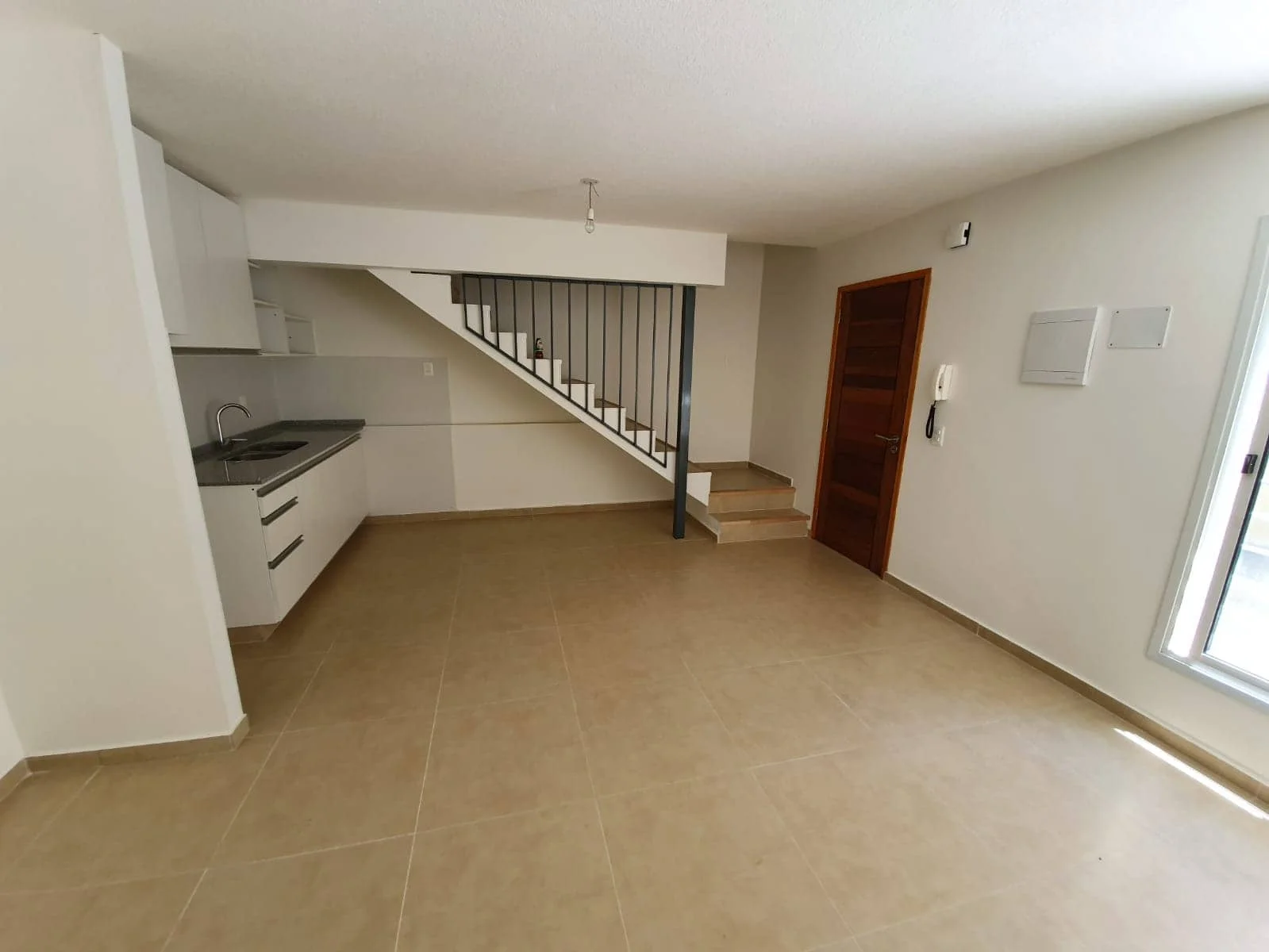 -En planta baja living comedor con cocina integrada con muebles aereos y bajo mesada
