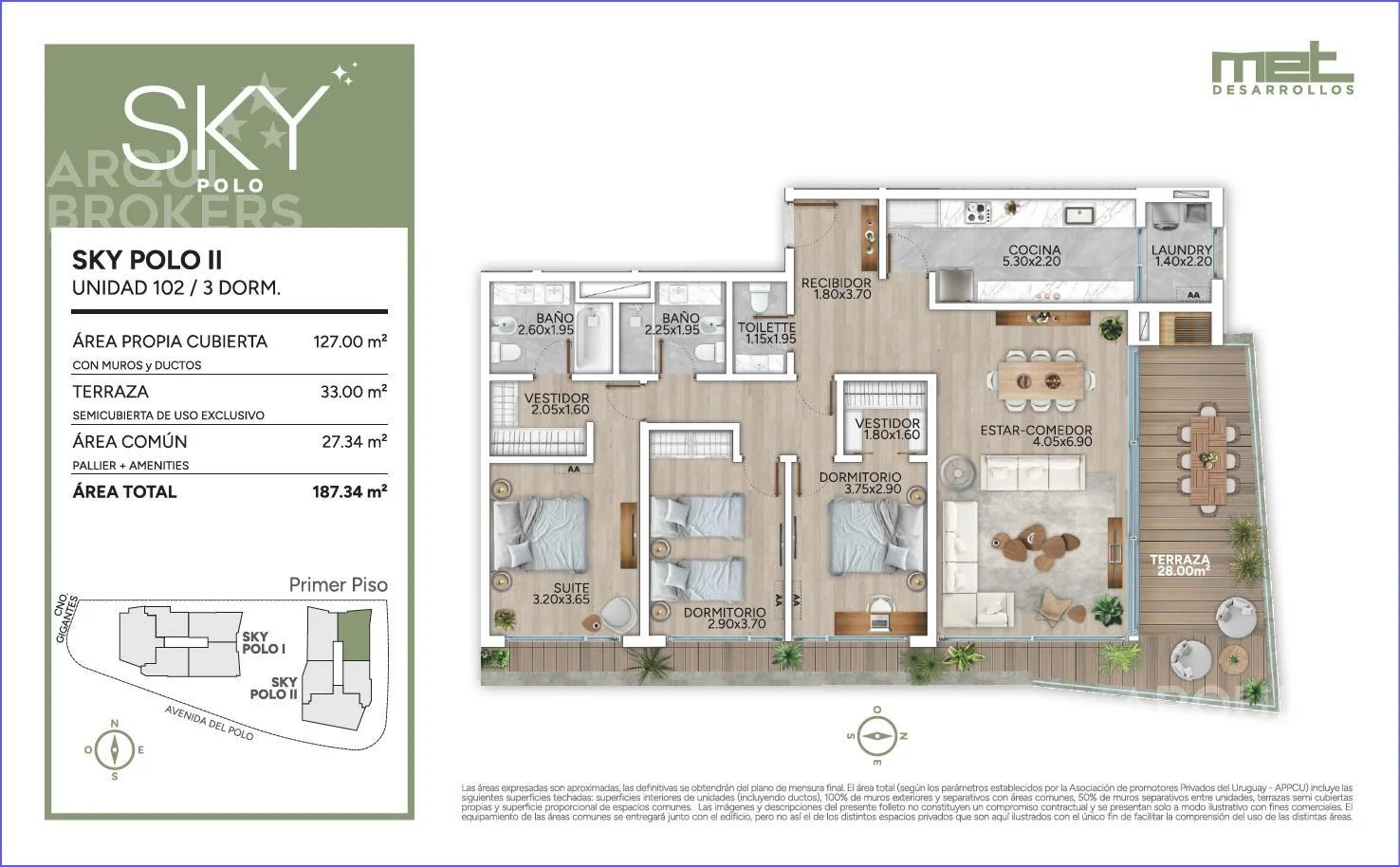 Garaje opcional simple U$S 30.000 y doble U$S 40.000, no incluidos en el precio.