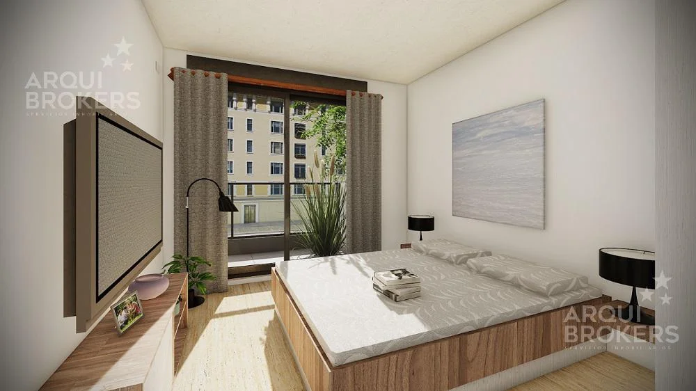 Pisos de porcelanato, cortina de enrollar, preinstalación de aire acondicionado.