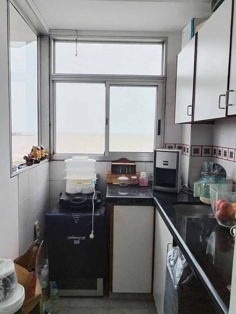 Se entra a un living comedor con salida a la terraza. Todos los ambientes salvo el baño tienen vista al mar.