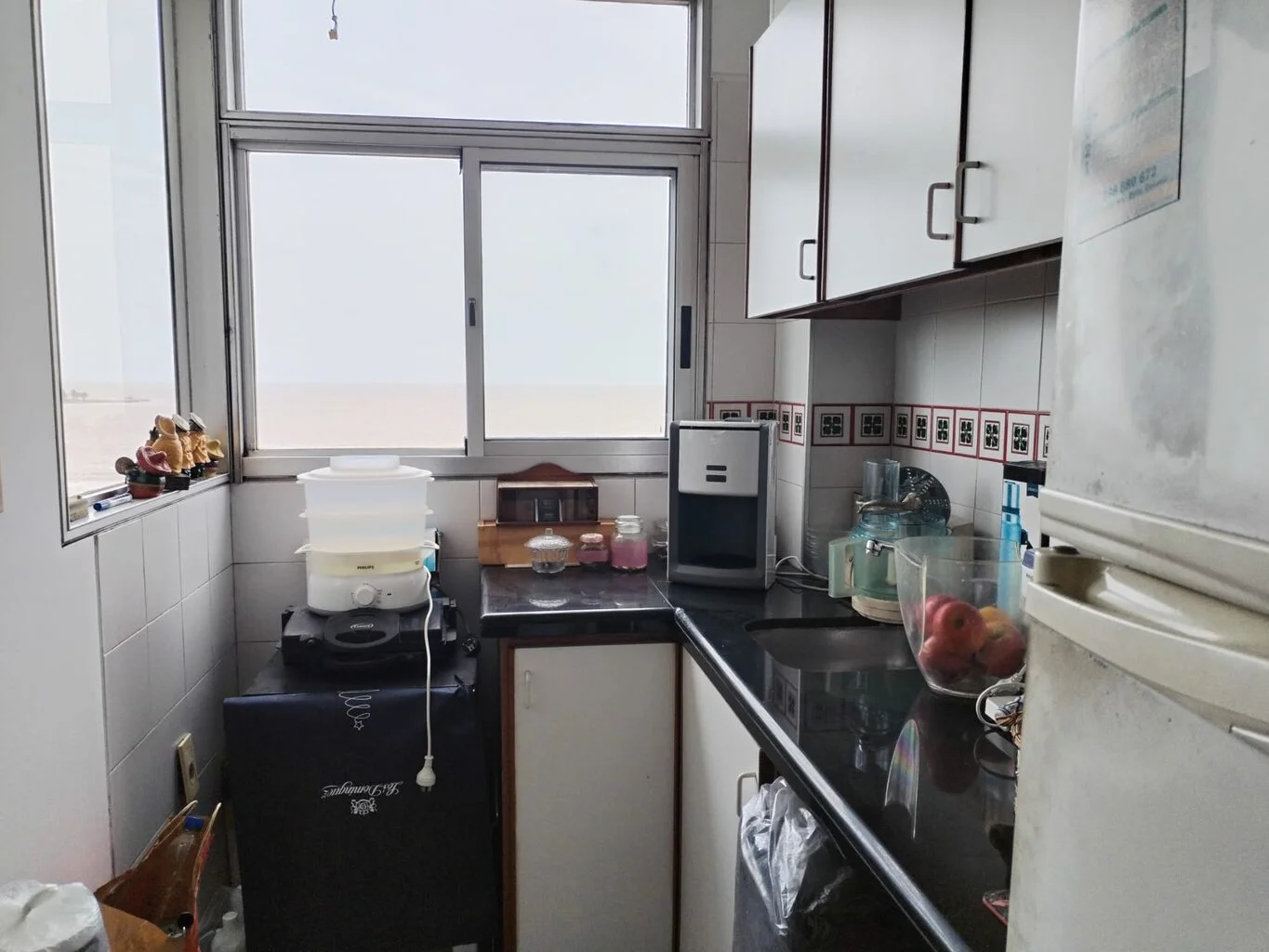 La cocina es definida, con placares sobre y bajo mesada y revestimiento de cerámica.