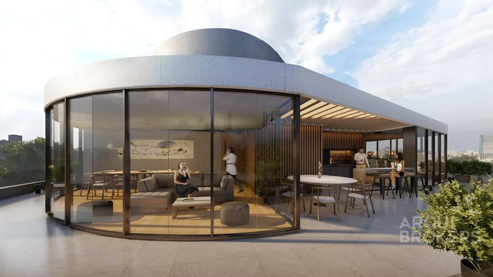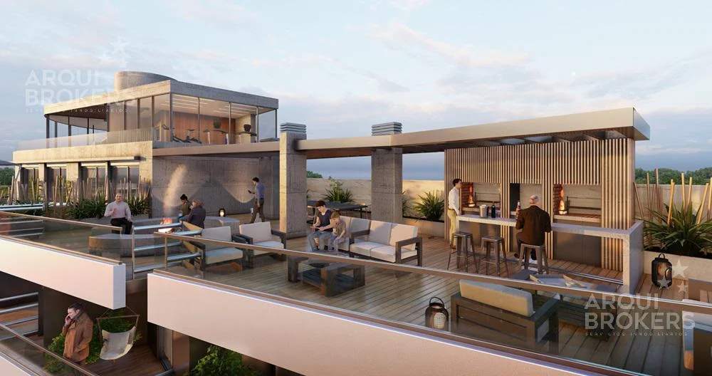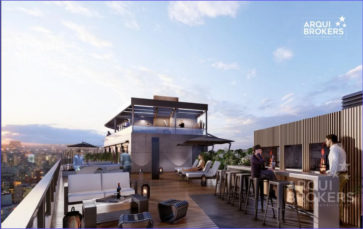 Amenities: cowork, rooftop lounge con livings exteriores, fogones y parrilleros, club house con parrillero, espacio gourmet con cocina abierta,