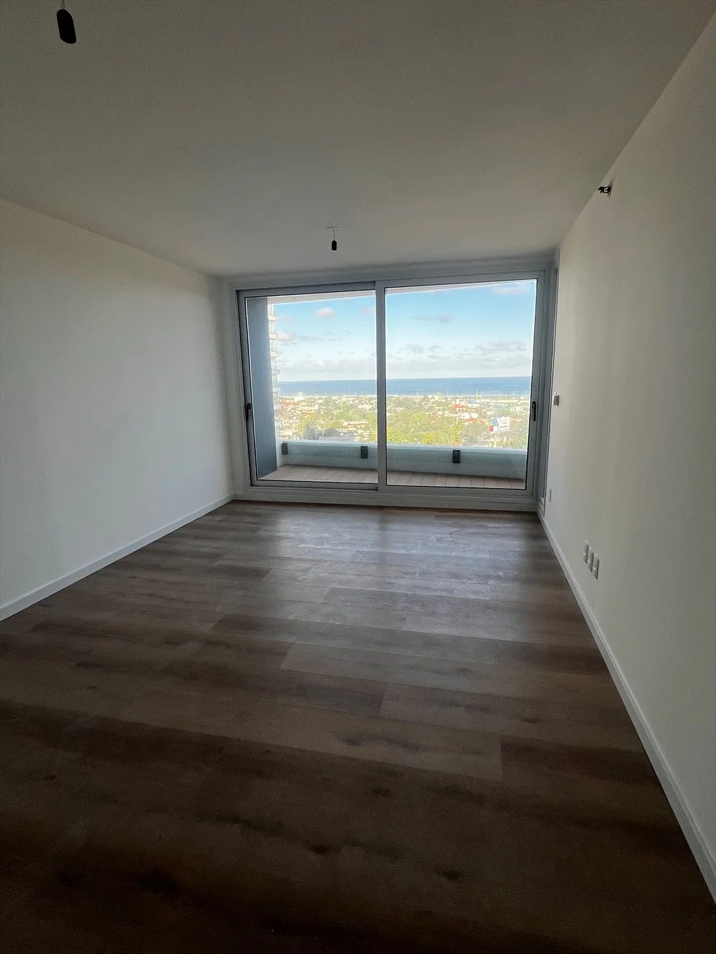 living - comedor con terraza con vista al mar , 3 dormitorios con 2 baños. Cocina semi integrada equipada con Anafe, Horno y Campana