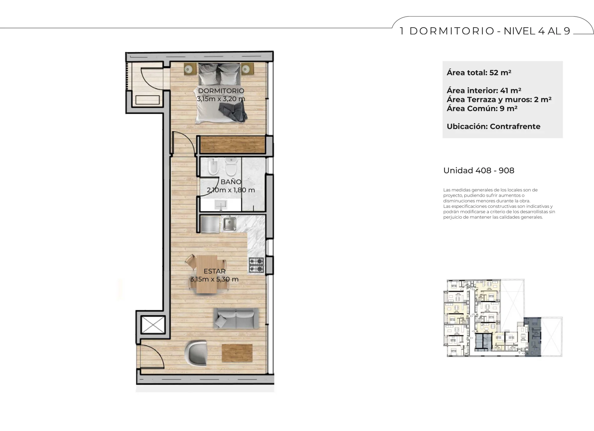 Apartamento de 1 dormitorio UNIDAD 608 desde U$S 114.000.-