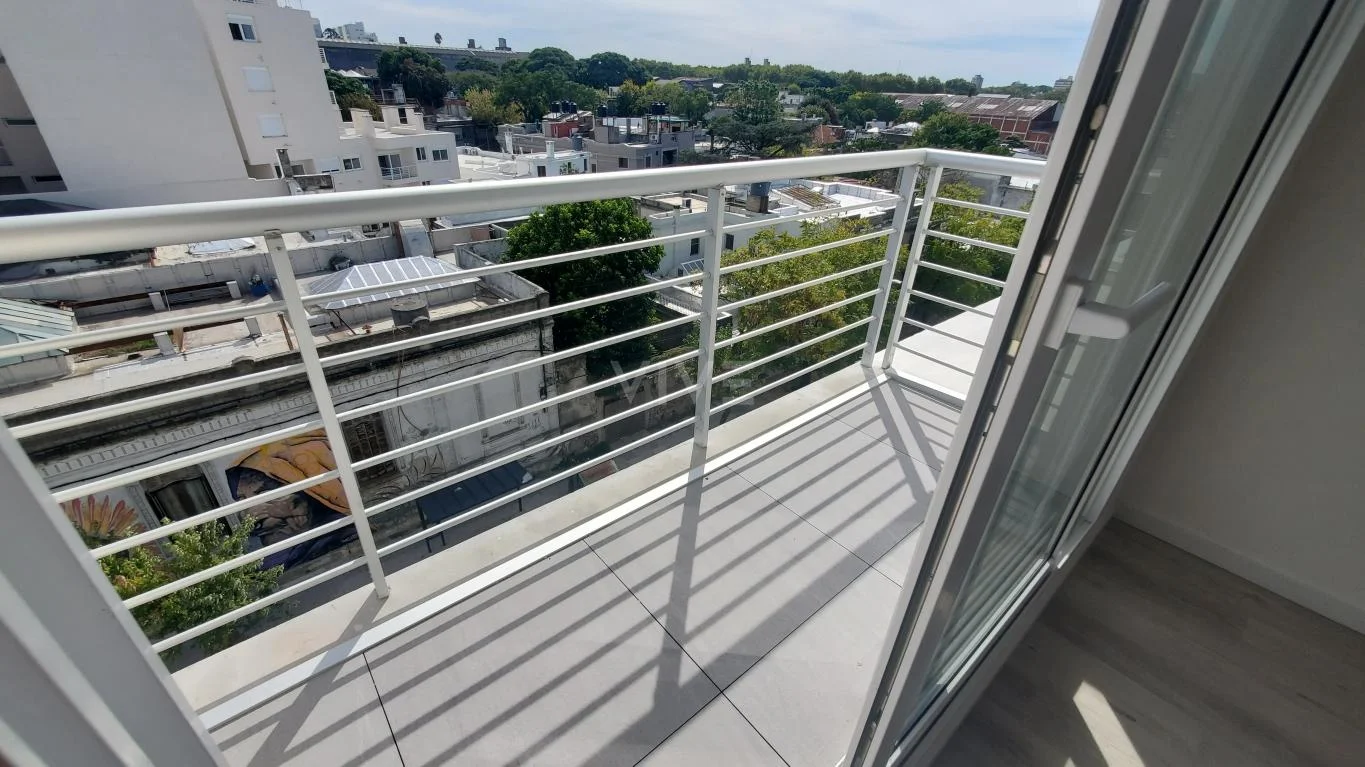 Living comedor al frente con AA y salida a balcón con orientación Norte.