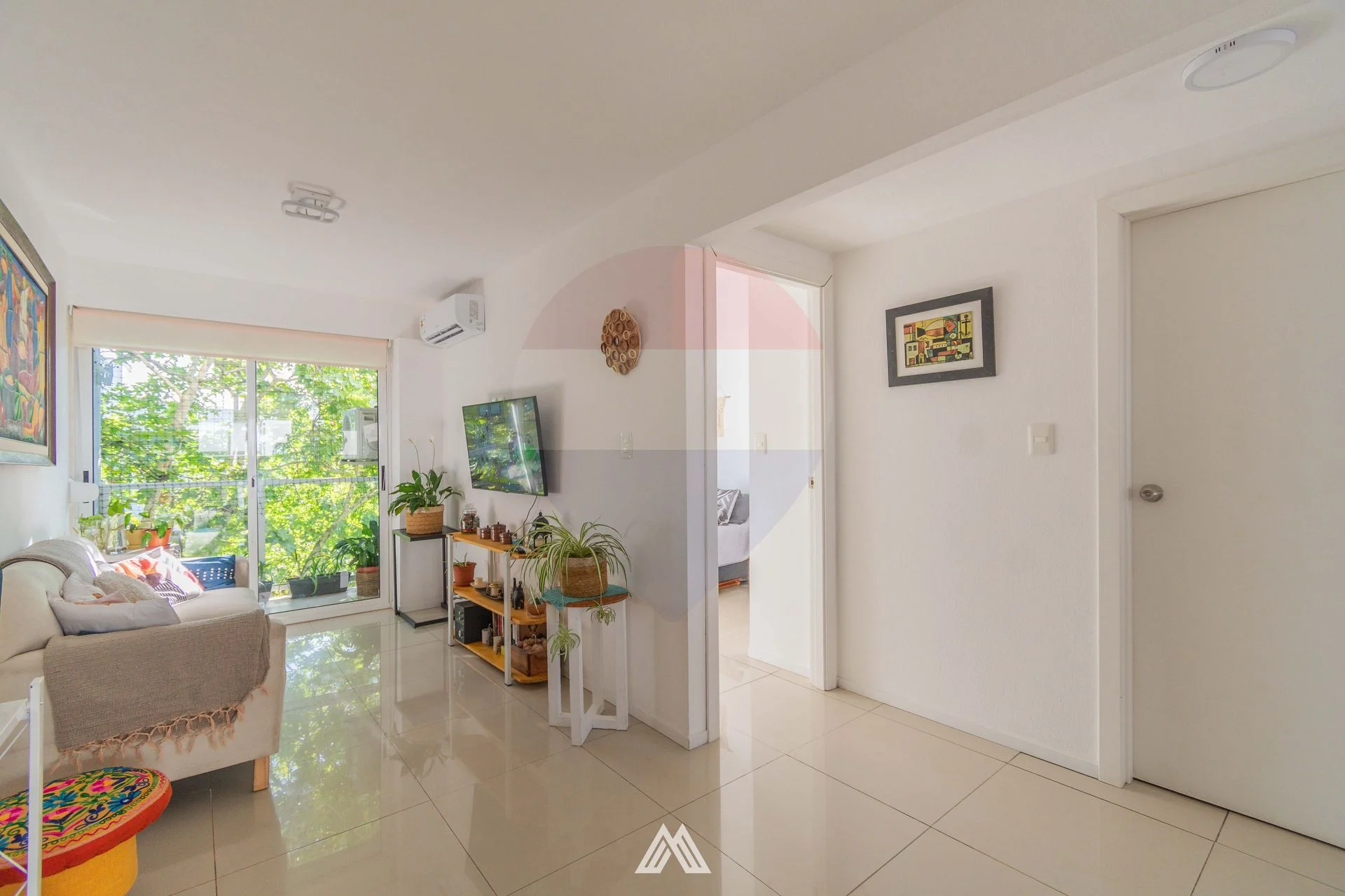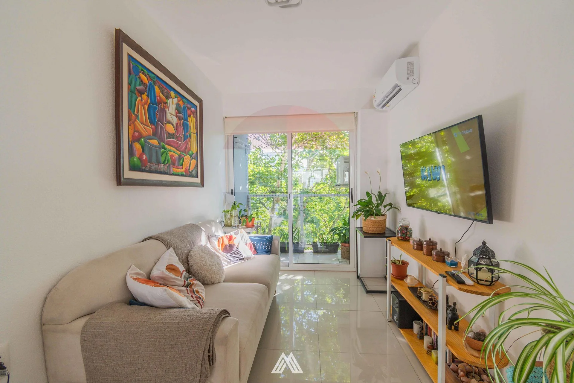 Living comedor con sector de cocina integrado y salida a terraza