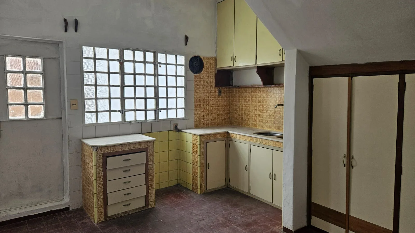 Cocina independiente bien equipada con conexión para lavarropas y salida a una terraza.