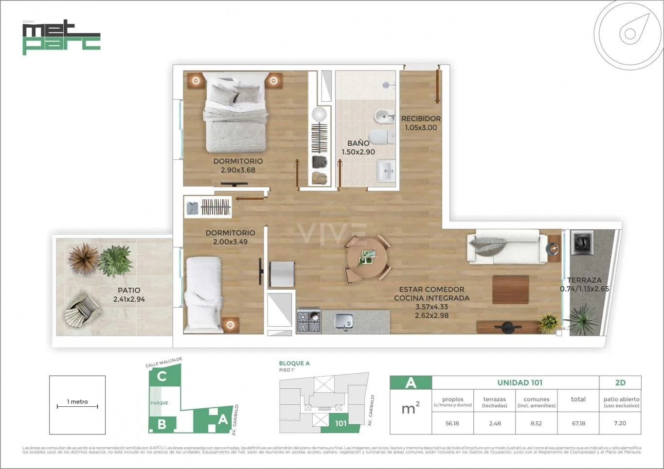 Met Parc es un condominio conformado por tres bloques que cuenta con parque para niños, salón multiuso, barbacoa con parrillero y vistas panorámicas, sala de juegos, sala multimedia con pantalla gigante y Gimnasio.